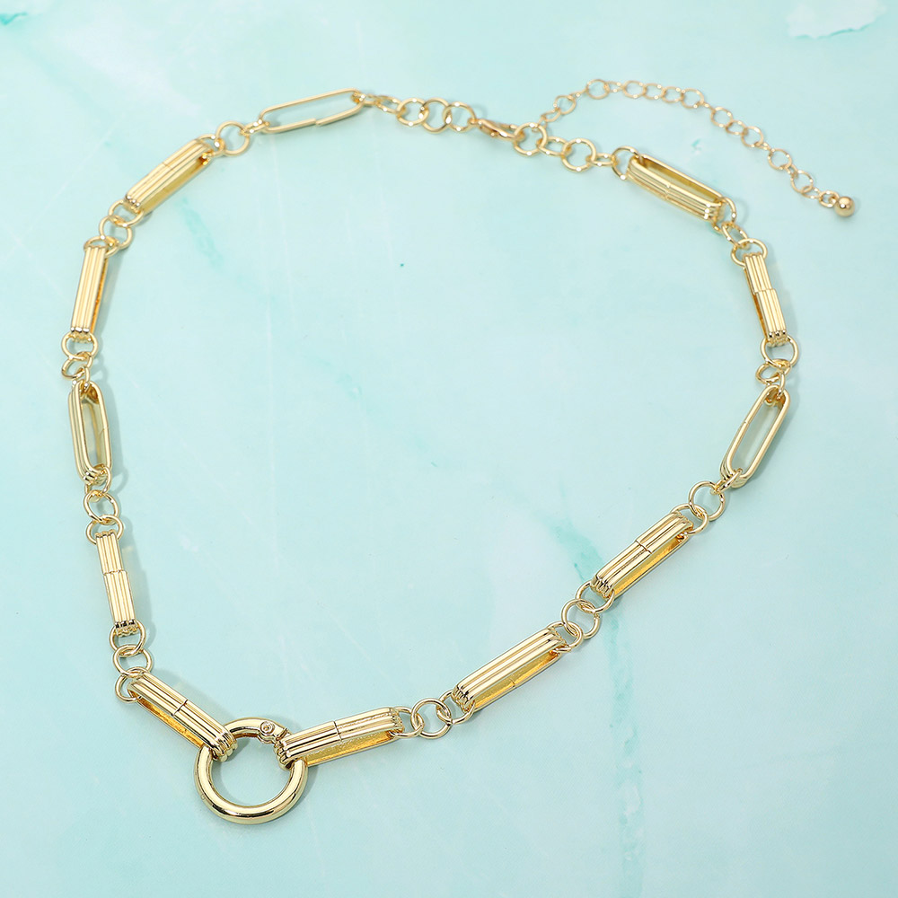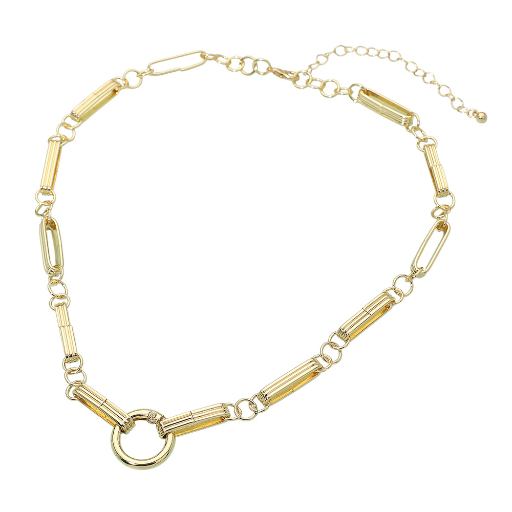 Details • Necklace Size : 17.5" + 3" L • Decor Size : 0.75" L • Make a bold style statement with this ring link necklace featuring a modern open-circle accent and adjustable chain length. Designed to wear solo or layered, it delivers a polished, fashion-forward look that easily elevates everyday outfits or completes evening ensembles. • Lead and Nickel Compliant