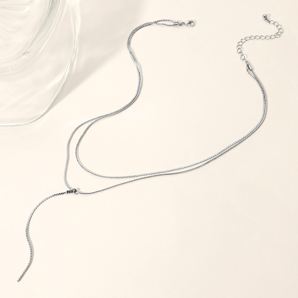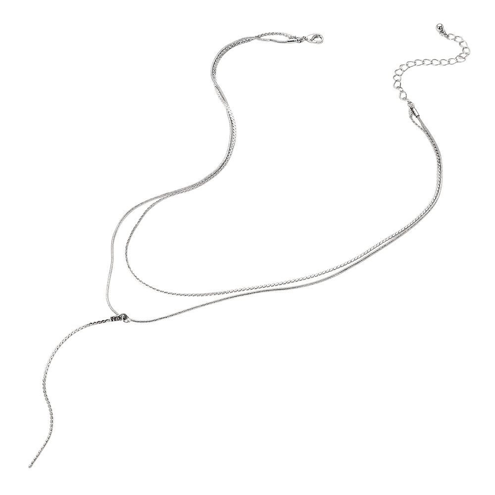 Secret Box _ Dropped Metal Chain Double Layered Y Necklace