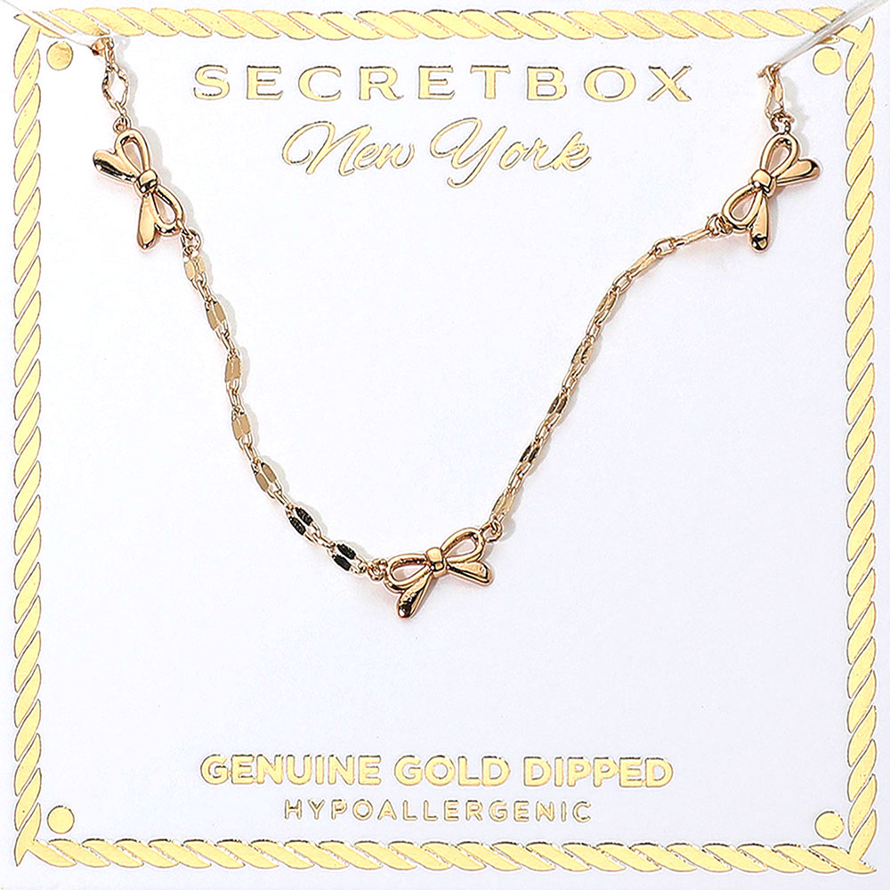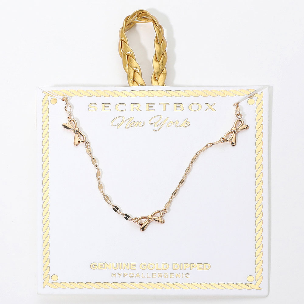 SECRET BOX_Genuine Silver Dipped Hypoallergenic Bow Charm Link Station Necklace