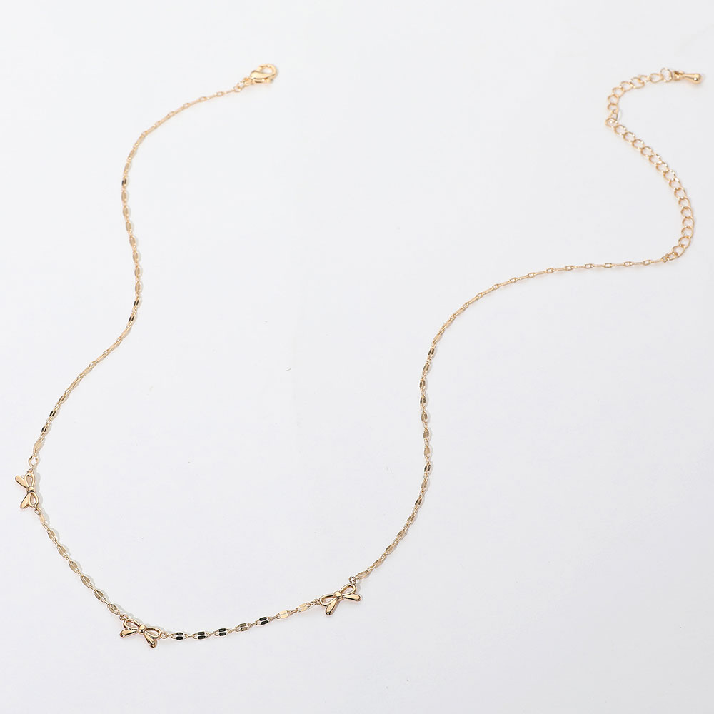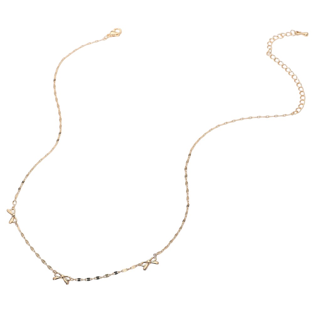 Details • Necklace Size : 15.5" + 3.5" L • Decor Size : 0.2" L • Delicate necklace adorned with dainty bow-shaped charms. A feminine and minimalist accessory perfect for layering or adding a subtle sparkle to any outfit. • Gold Dipped • Hypoallergenic