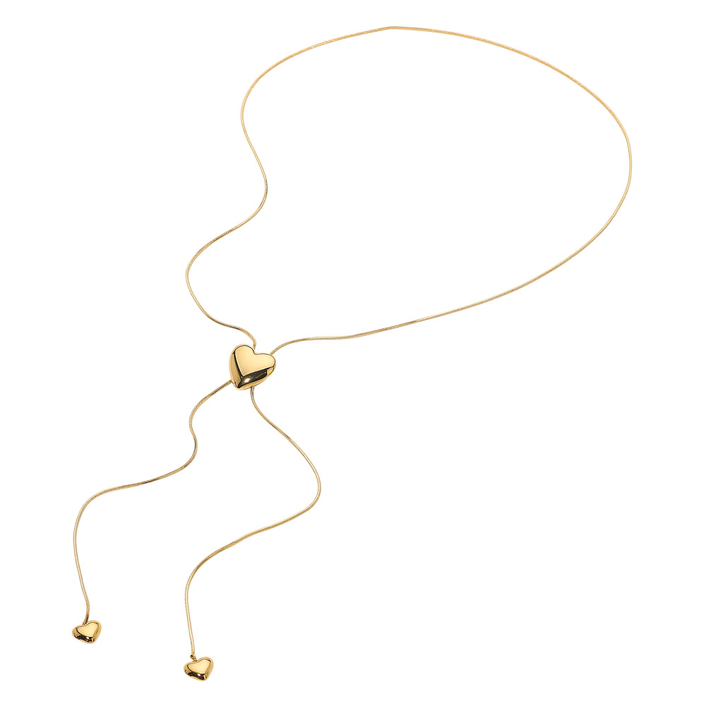 Details • Necklace Size : 30" L • Decor Size : 0.6" X 0.6" • Adjustable • Water Resistant • Elevate your look with this adjustable heart slider pendant necklace featuring a sleek central charm and delicate ends. Its versatile, minimal design makes it easy to style for any occasion, offering a chic accent to both casual and dressy outfits. Perfect as a thoughtful gift or a timeless accessory for daily wear. • Hypoallergenic • Stainless Steel