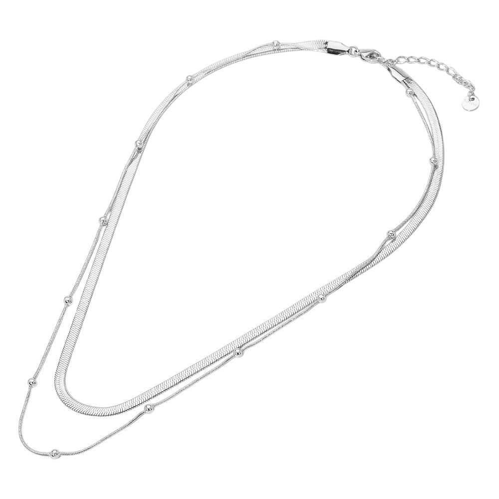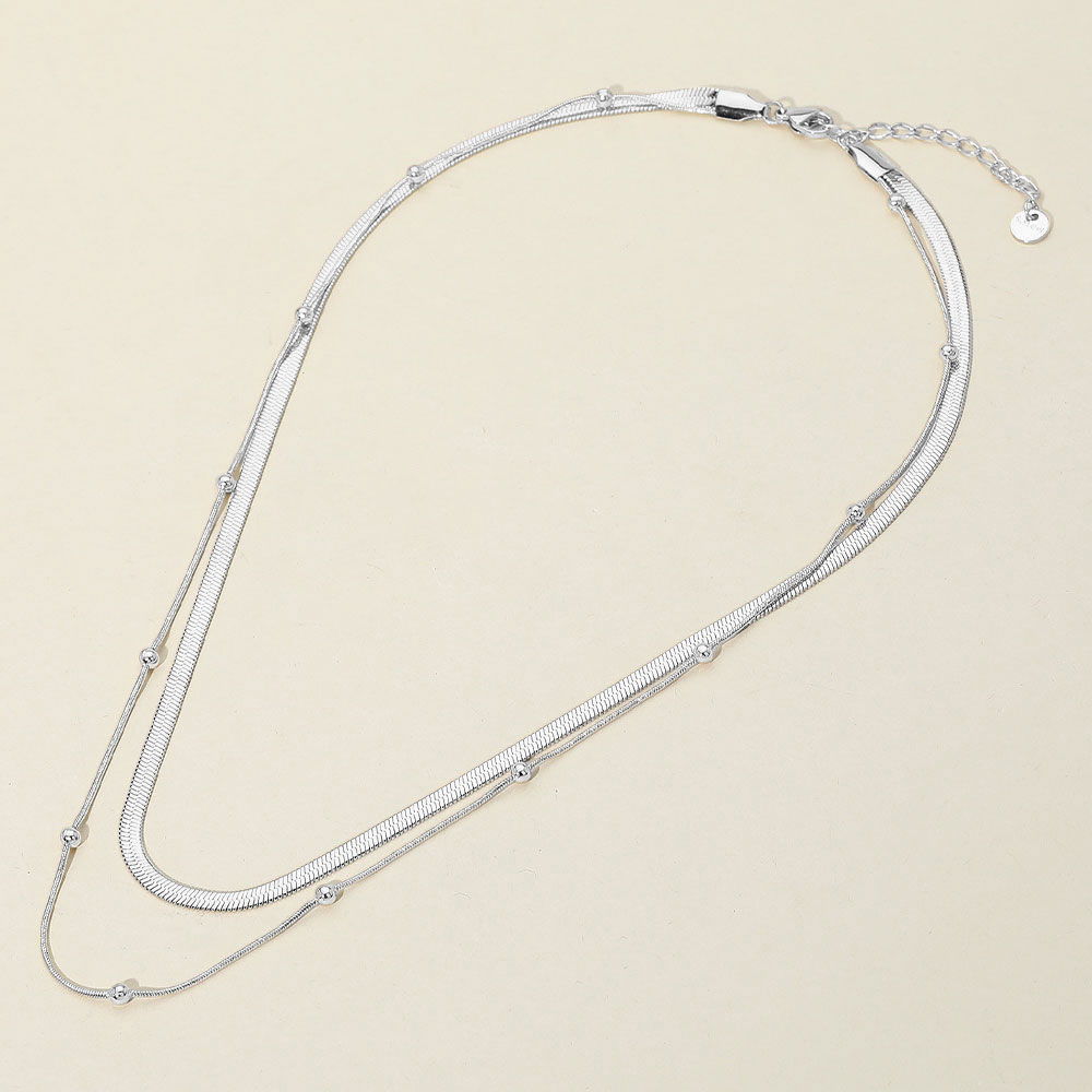 Details • Necklace Size : 16.25" + 2" L • Decor Size : 0.8" L • Chic layered chain necklace with minimalist bead detailing. A versatile accessory for day or night, adding a touch of elegance to any neckline or outfit. • Hypoallergenic • Stainless Steel