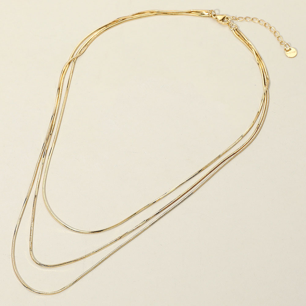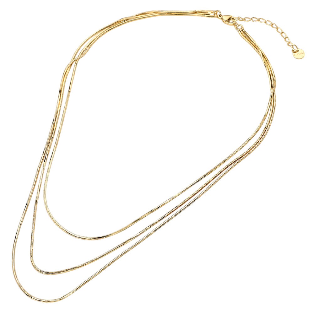 • Elegant triple layered snake chain necklace designed for modern styling. Lightweight and versatile, ideal for casual wear or special occasions.