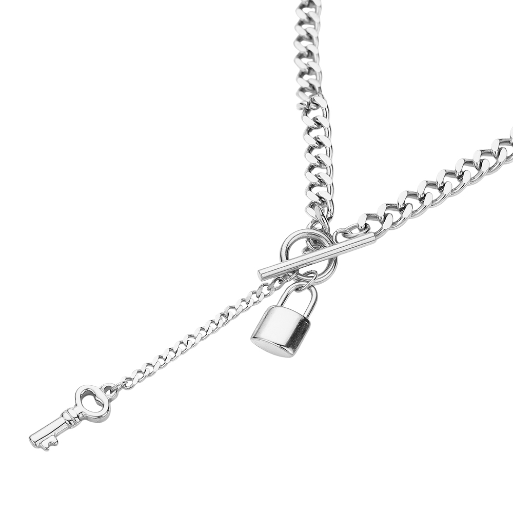 SECRET BOX_Stainless Steel Key and Lock Toggle Chain Necklace