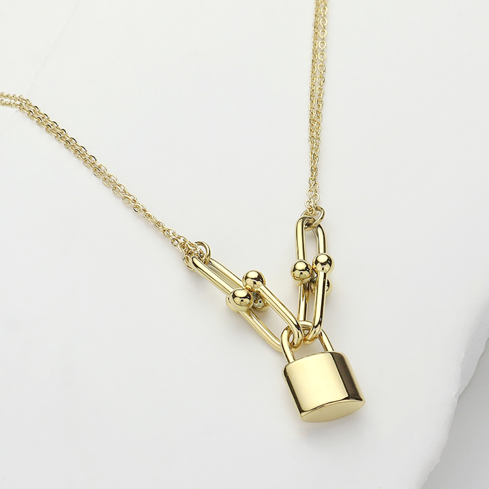 SECRET BOX_Stainless Steel Lock Pendant Hardware Link Double Layered Necklace
