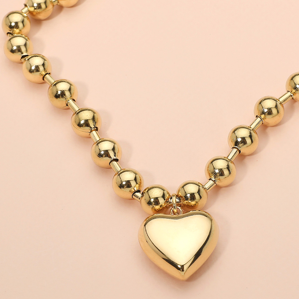 Details • Necklace Size : 18.5" + 2.25" L • Decor Size : 1.4" L • This beaded chain necklace features a bold heart pendant suspended from polished spherical links. A romantic yet modern piece, it’s perfect for adding charm and personality to any outfit. Wear it solo as a statement or layer it for a trend-forward look. • Stainless Steel