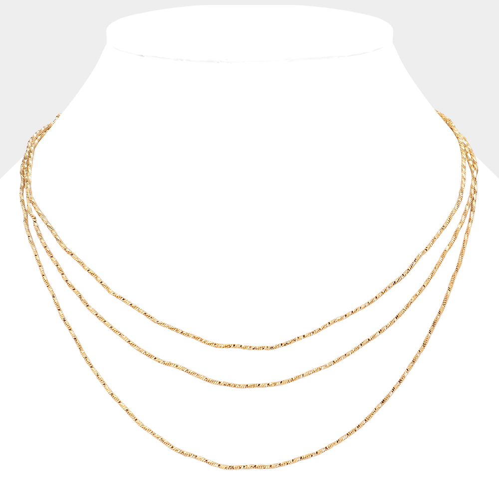 SECRET BOX_Triple Layered Brass Chain Necklace
