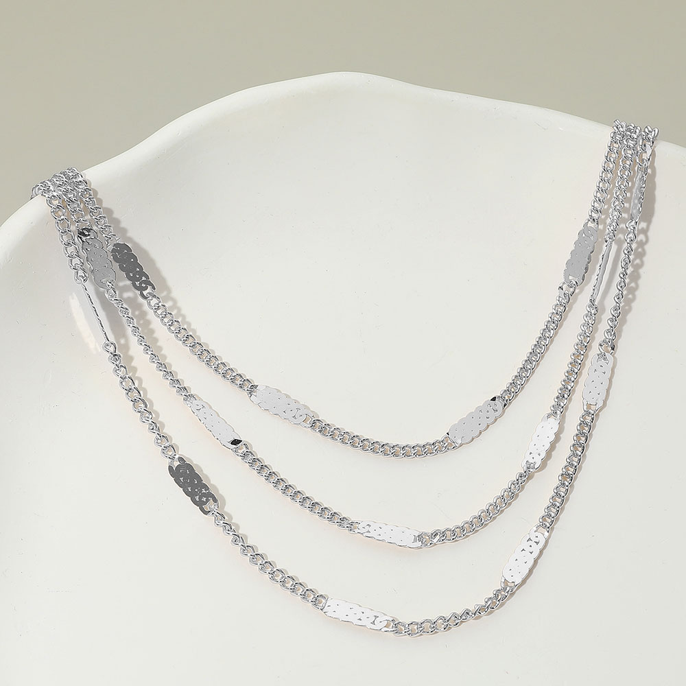 Silver Dipped Triple Layered Flat Disc Accent Curb Chain Necklace