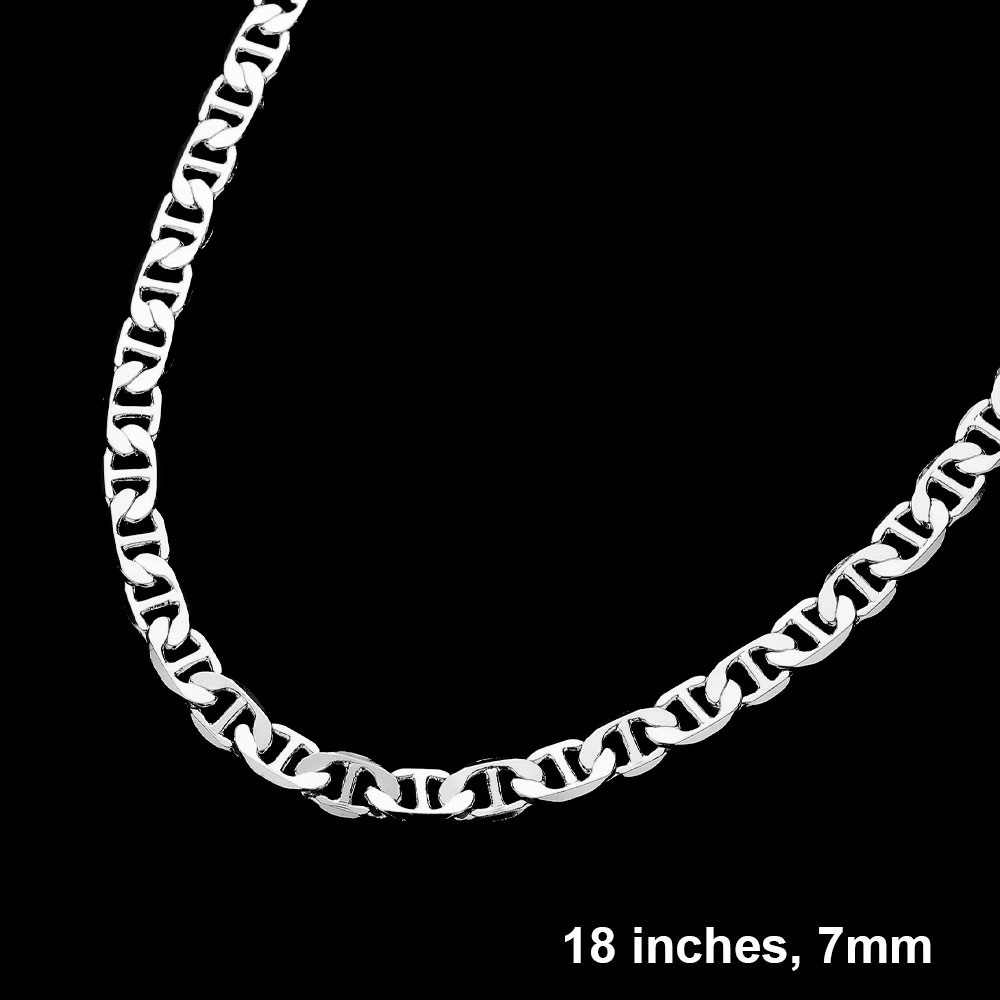 Silver Plated 18 Inch 7mm Mariner Metal Chain Necklace