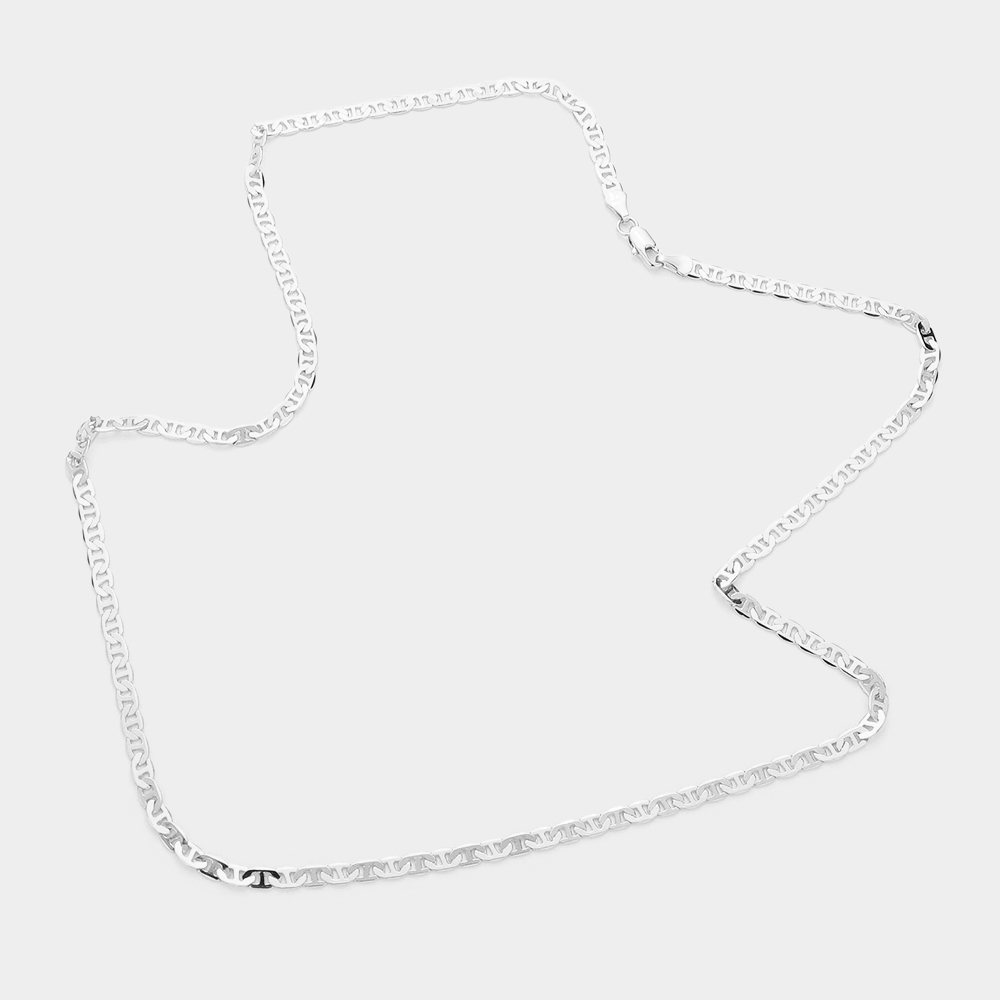 Silver Plated 24 Inch 4mm Mariner Metal Chain Necklace