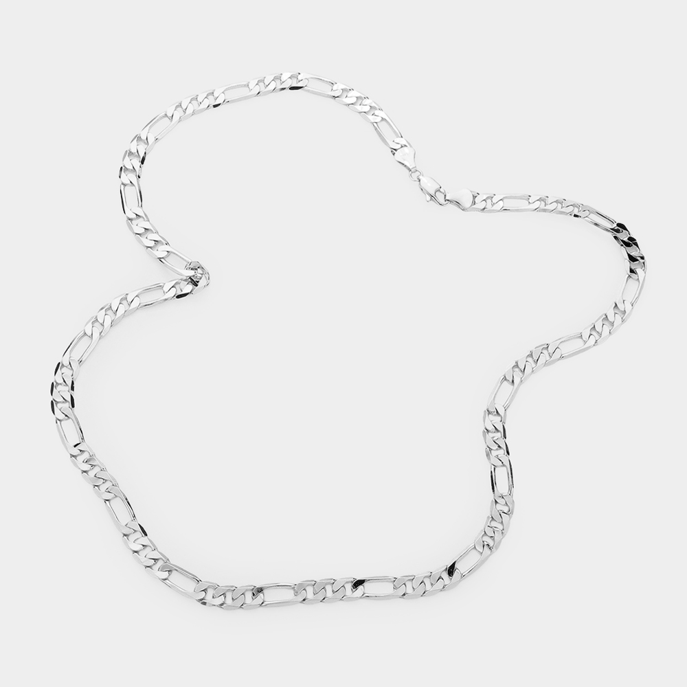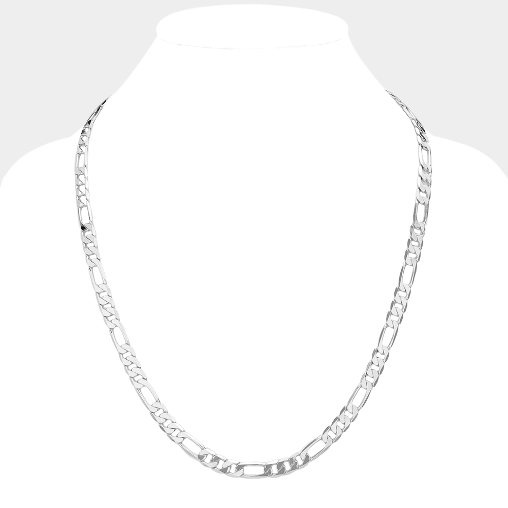 Silver Plated 24 Inch 8mm Figaro Metal Chain Necklace