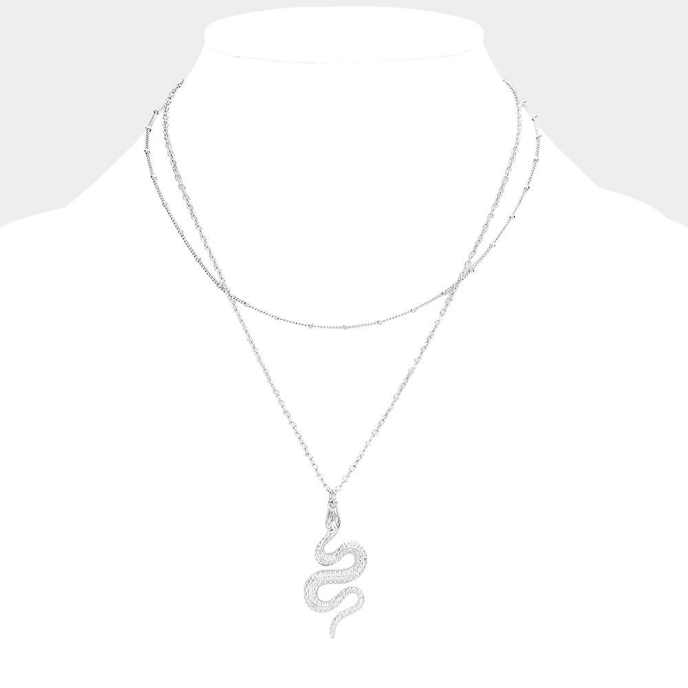 Bold Bling Studded Alligator Pendant Chunky Chain Statement Necklace