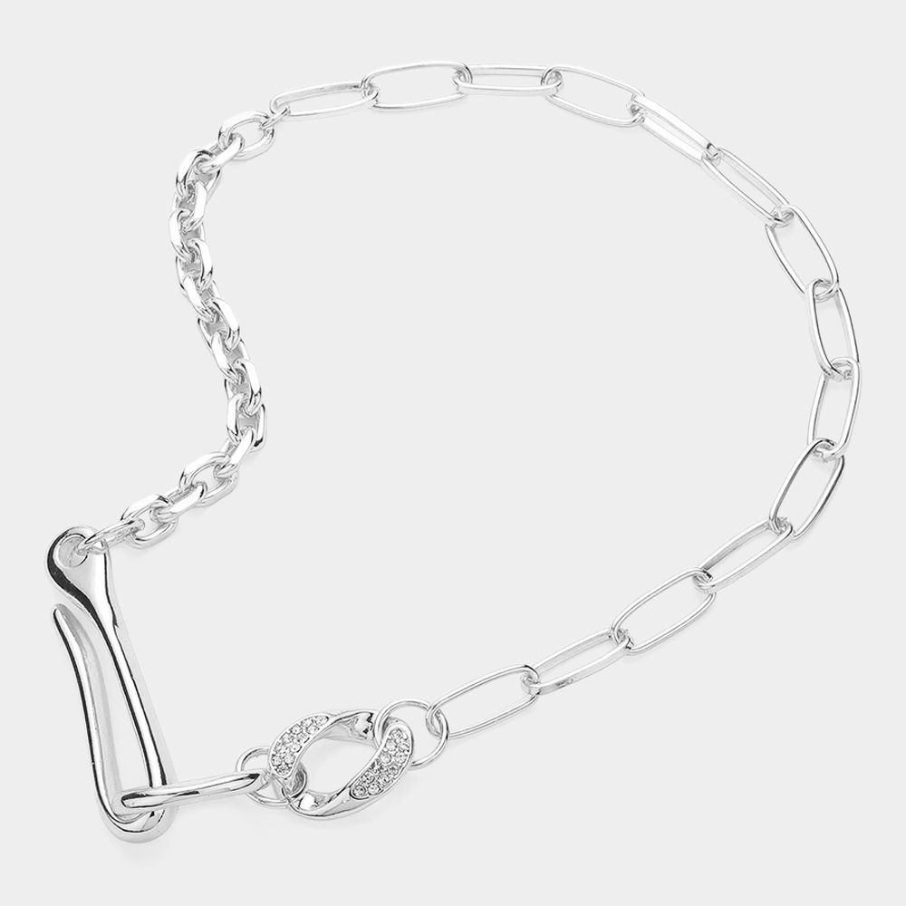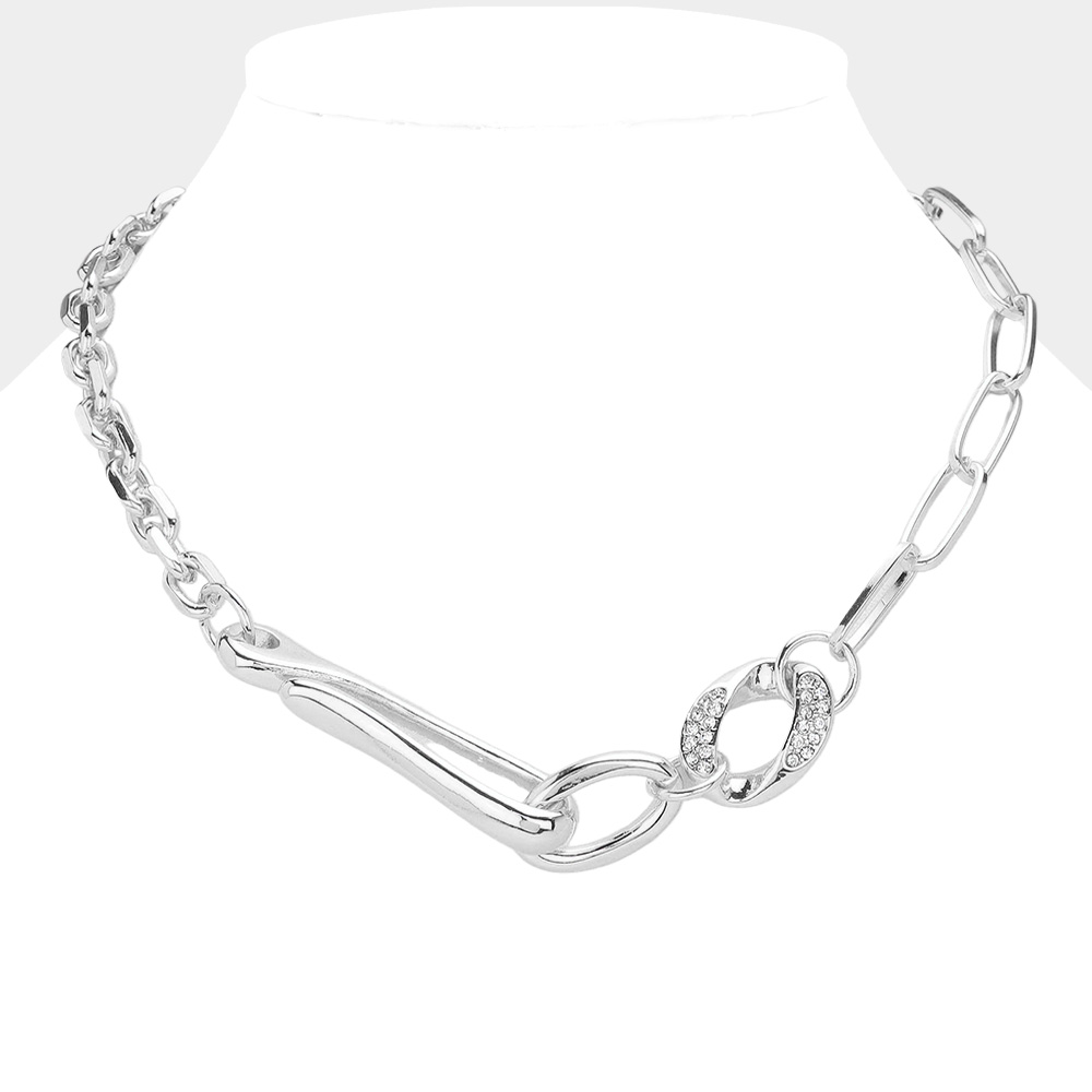 Stone Paved Metal Link Pointed Chain Necklace
