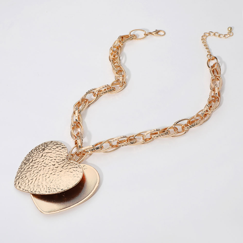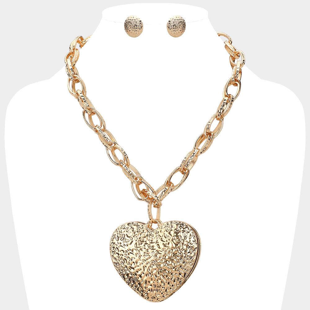 Textured Metal Heart Pendant Chunky Industrial Chain Statement Necklace