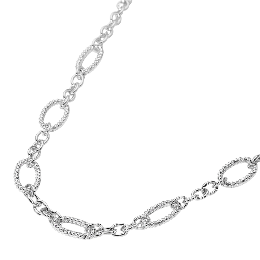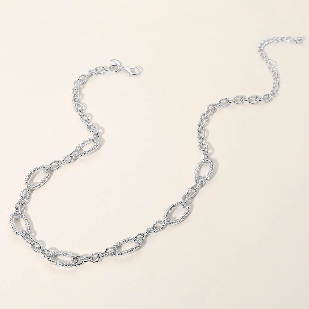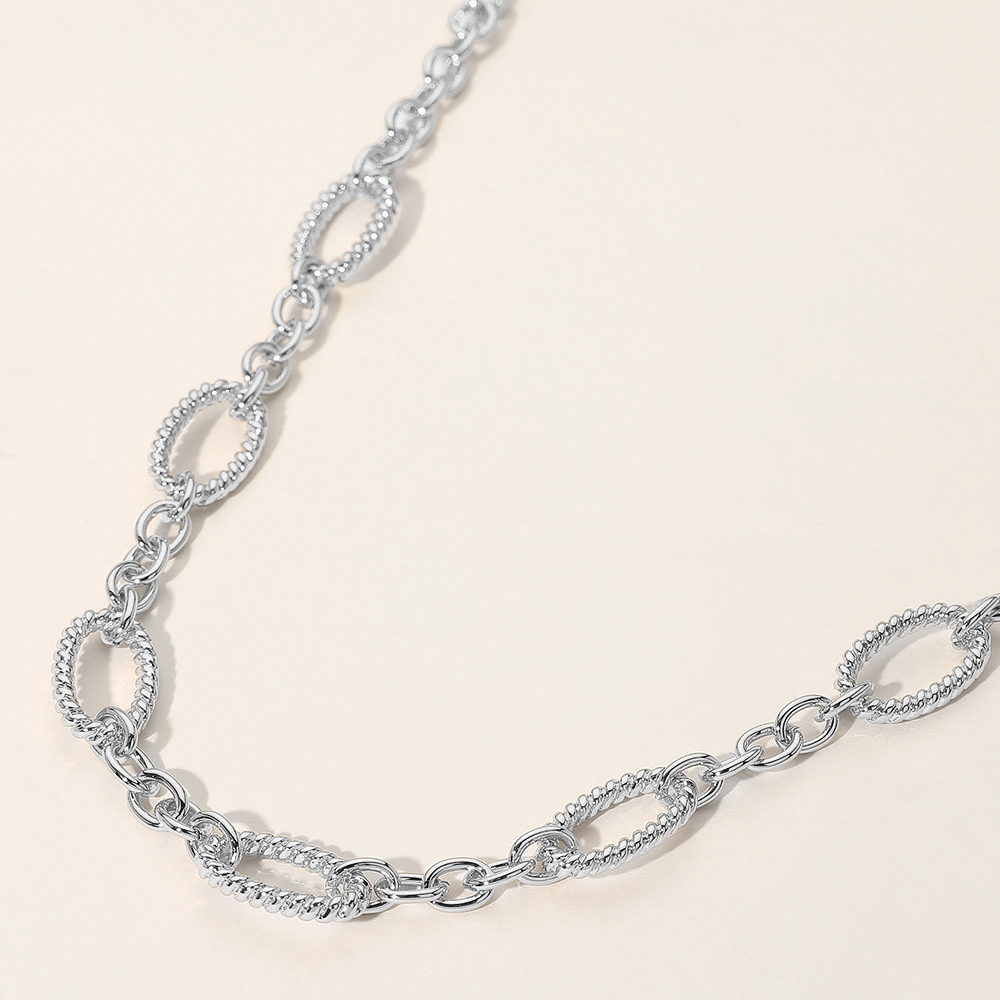 Details • Necklace Size : 18.5" + 3.25" L • Decor Size : 0.5" L • Add sophistication to any outfit with this oval link chain necklace. Its refined design and textured links make it a perfect accessory for both casual and formal occasions. • Lead and Nickel Compliant