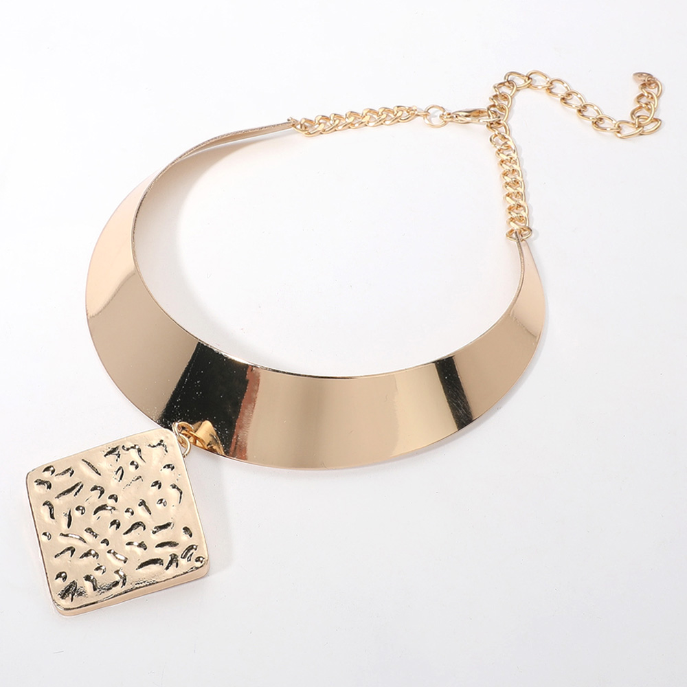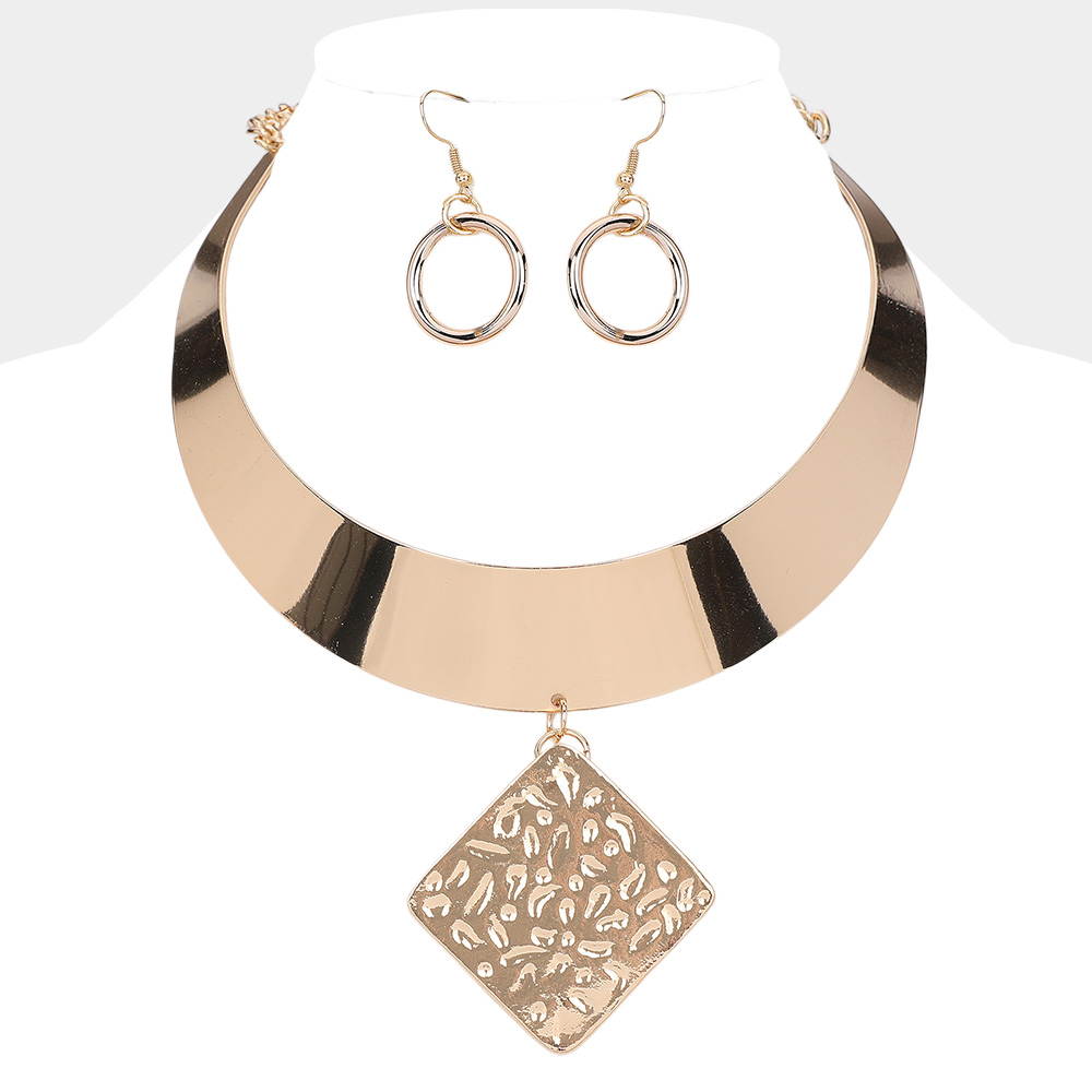 Textured Metal Rhombus Pendant Pointed Necklace