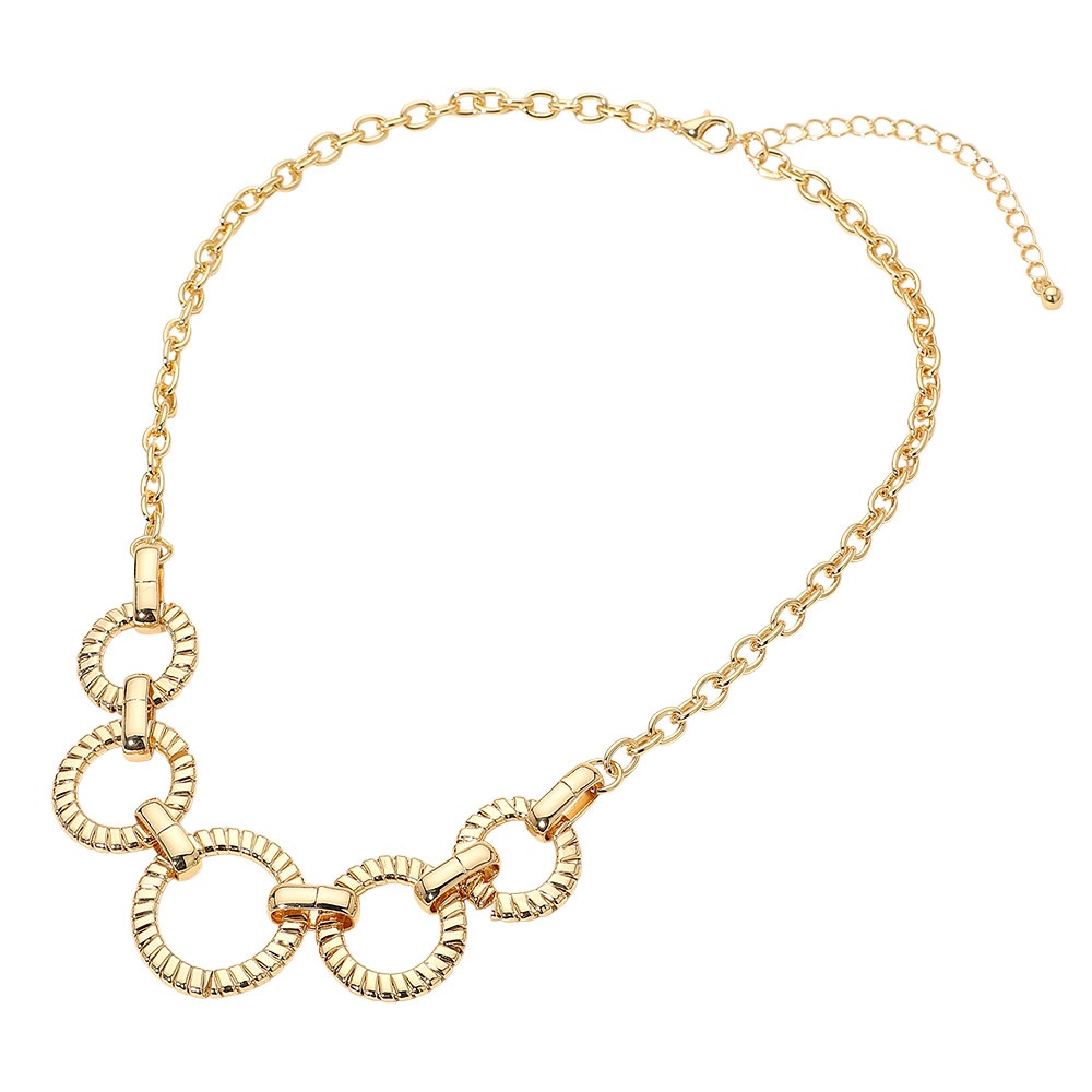 Textured Metal Ring Link Statement Necklace