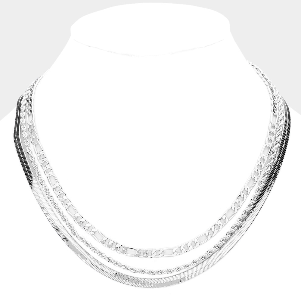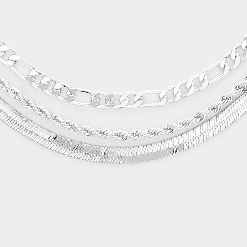 Chain Colored Open Rectangle Link Triple Layered Necklace