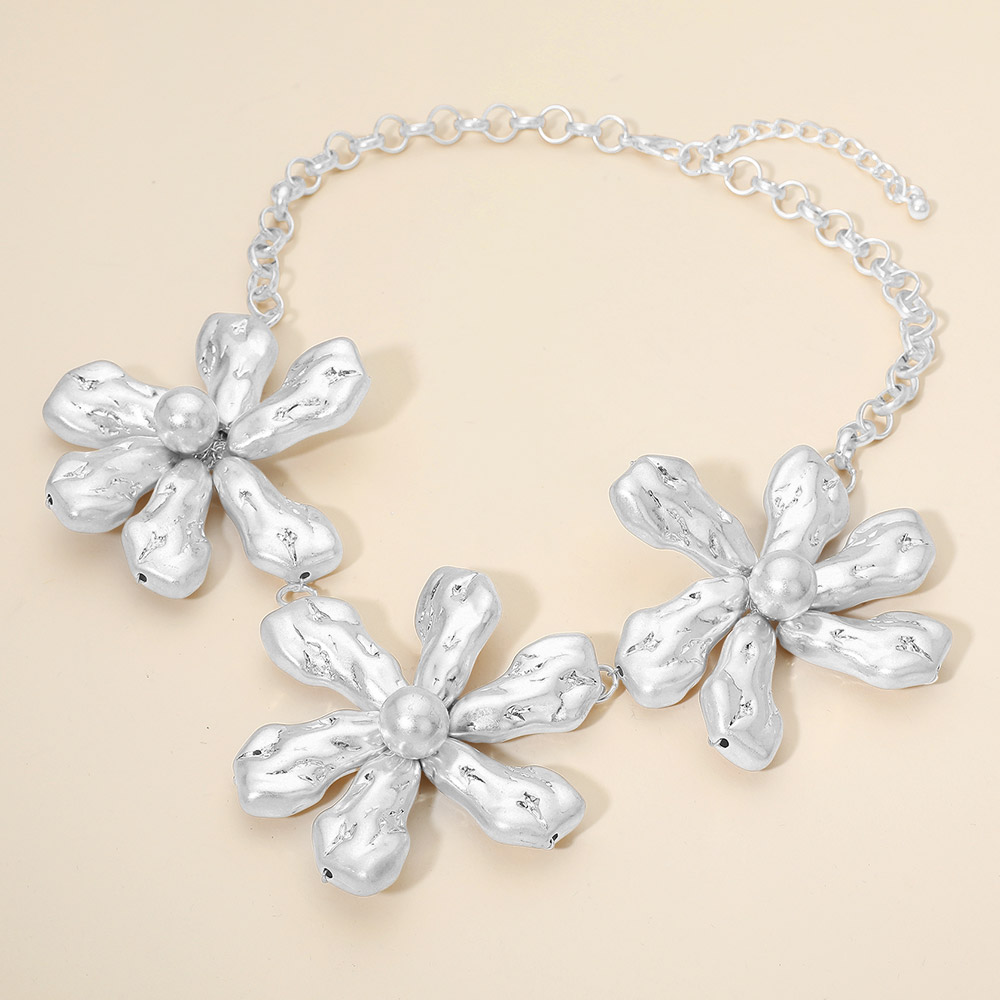 • Statement flower link necklace designed to elevate modern and feminine styling. Features bold sculpted floral elements connected by a sleek chain for a standout silhouette. Ideal for boutiques seeking trend driven accessories that pair effortlessly with casual outfits, special occasions, or layered jewelry looks.