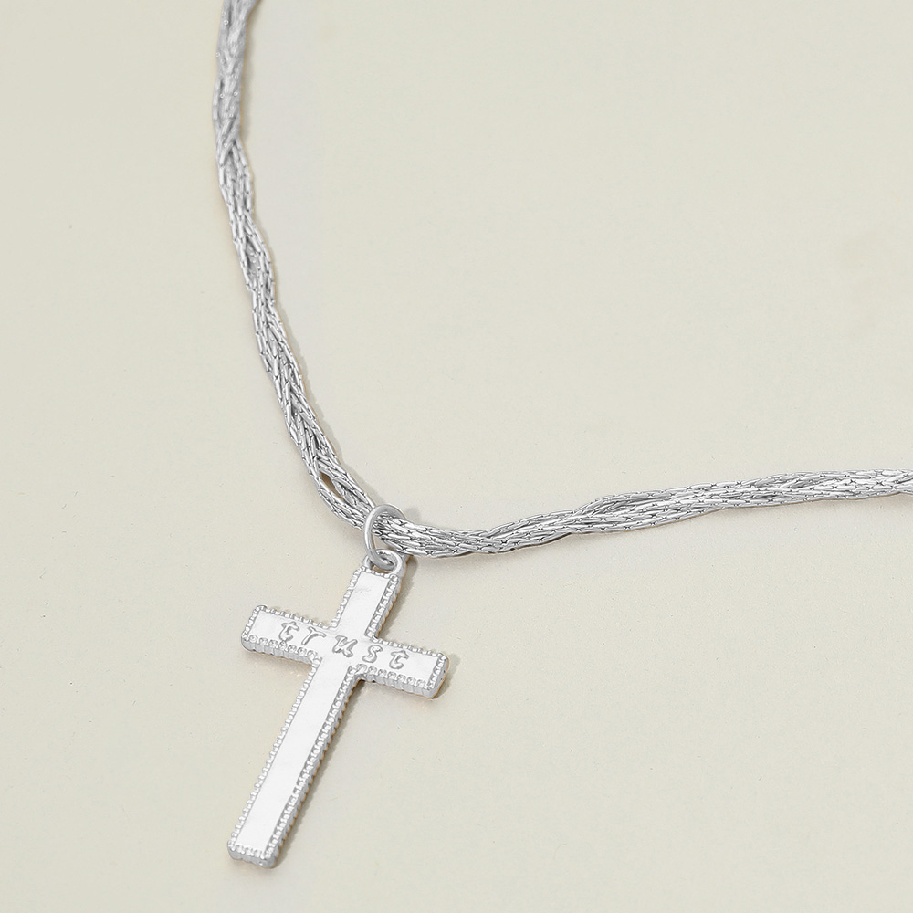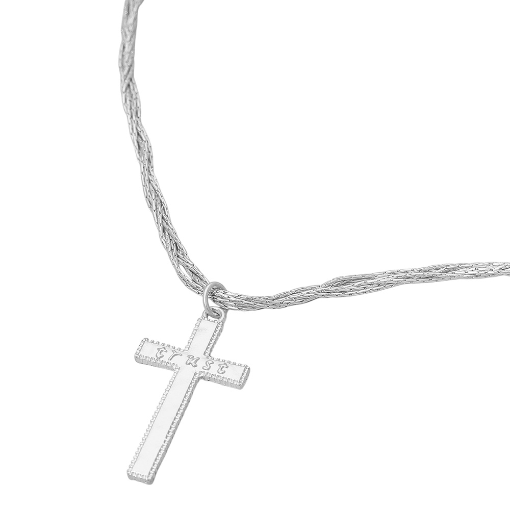 TRUST Engraved Cross Pendant Twisted Multi Metal Chain Necklace
