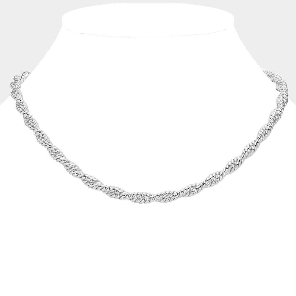 14K Gold Plated Two Tone Chunky Textured Mixed Link Chain Necklace