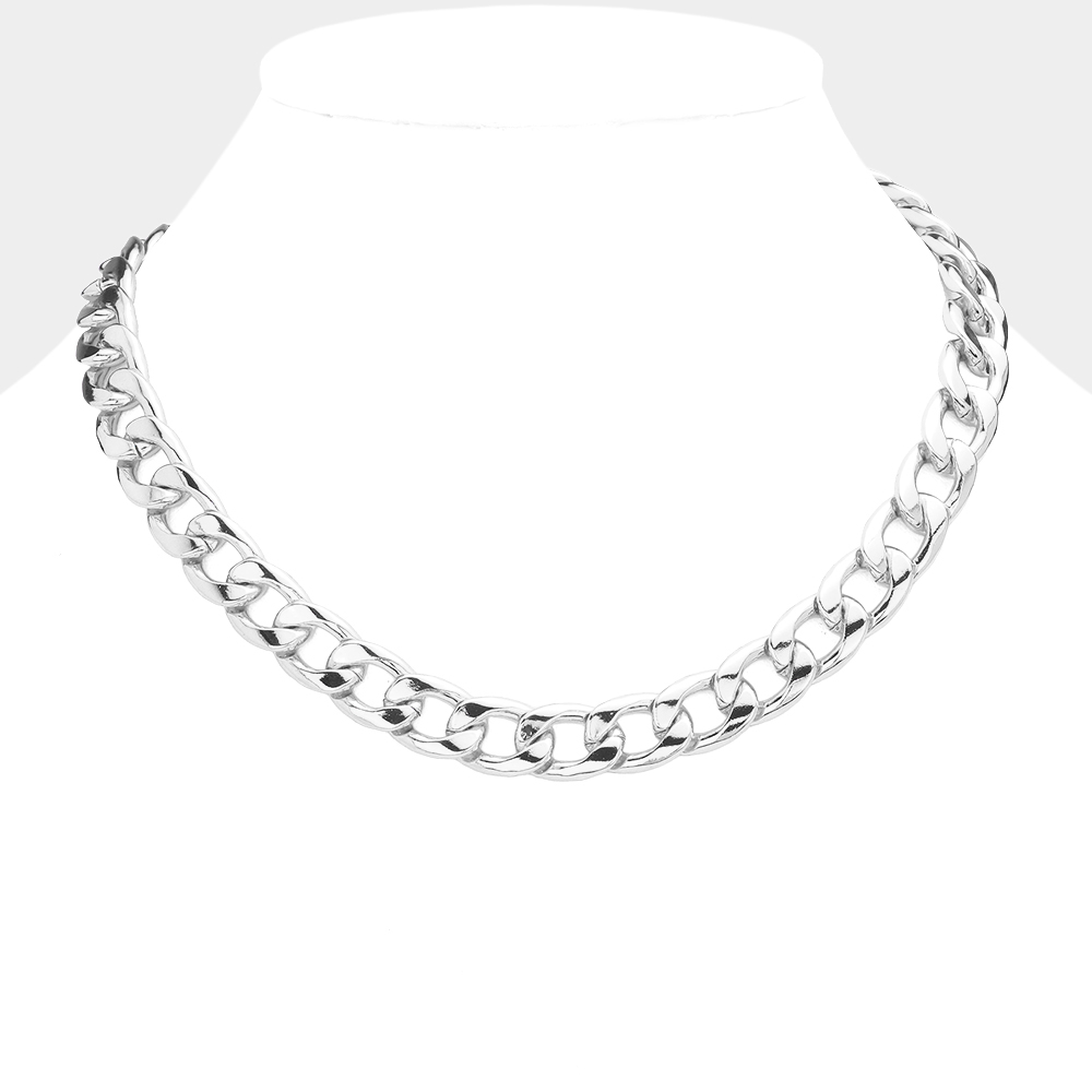 Silver Dipped Triple Layered Oval Link Chain Necklace