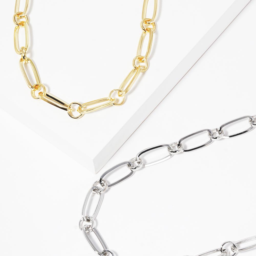 Details • Size : 16" L • Decor Size : 0.4" L • Make a striking impression with this bold paperclip link chain necklace, designed with oversized links for a modern, confident look. Perfect for layering or wearing solo, this sleek accessory adds a touch of sophistication and edge to both casual and elegant outfits. • Lead and Nickel Compliant • Made In Korea • Gold Dipped • Brass