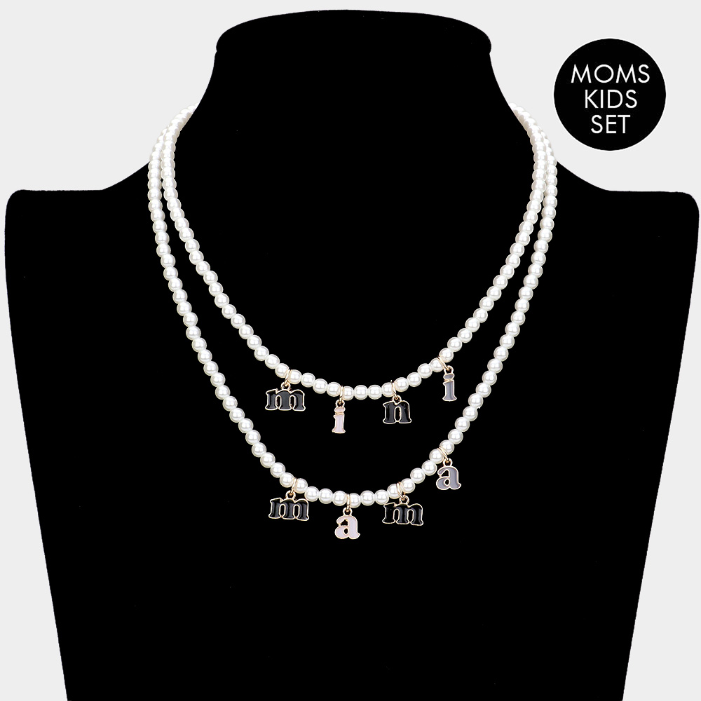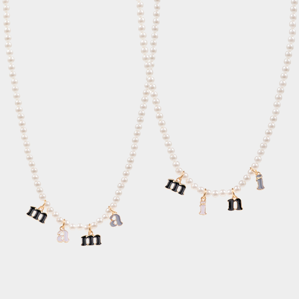 2PCS -mini mama Pendant Moms and Kids Set Pearl Necklaces