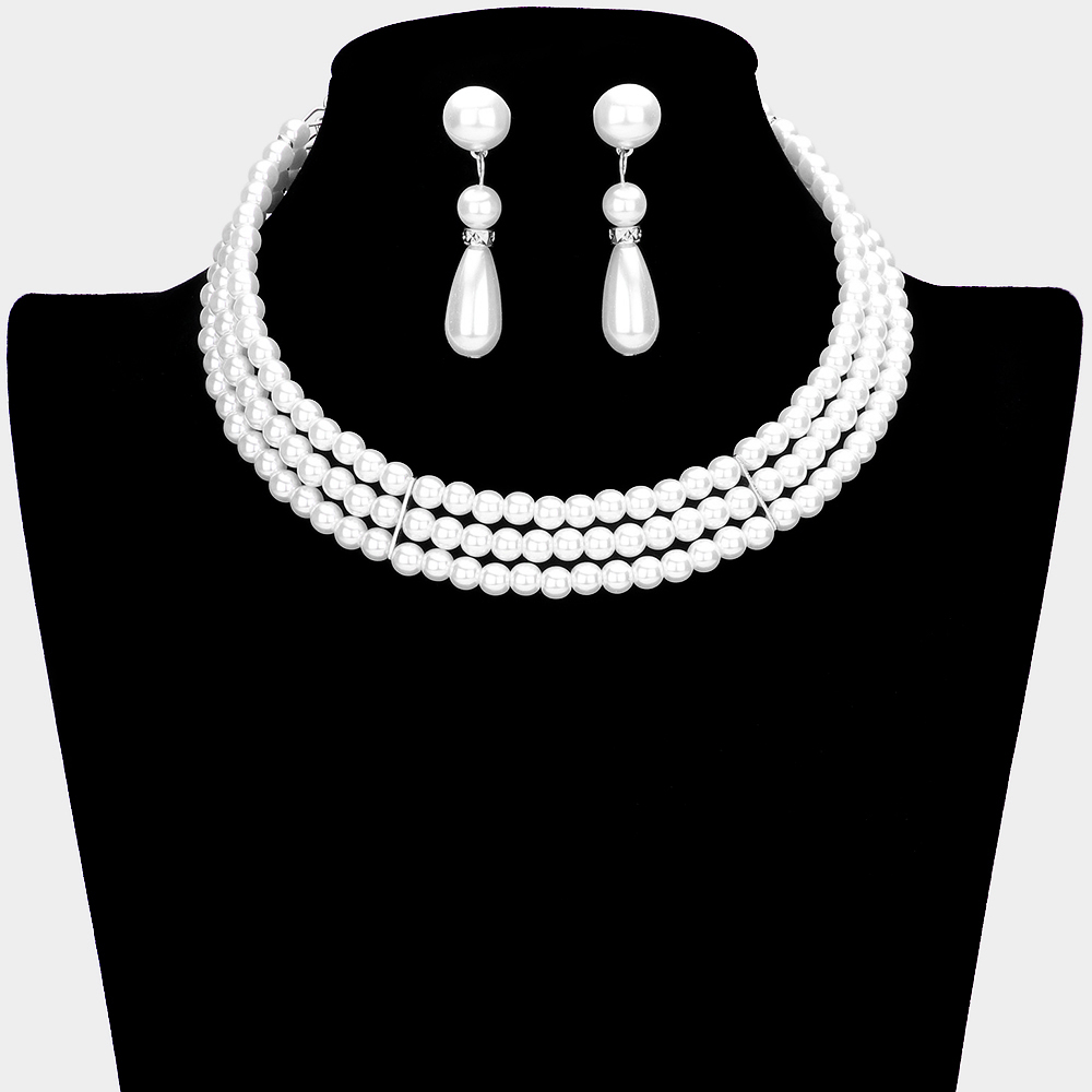 Pearl Centered Rhinestone Embellished Pendant Necklace