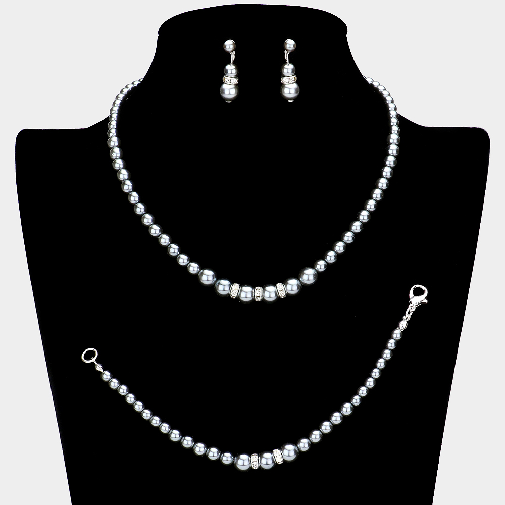 3PCS Crystal Detail Pearl Necklace Jewelry Set
