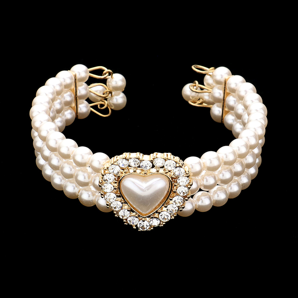 3PCS - Pearl Heart Pendant 3-Row Choker Necklace Jewelry Set