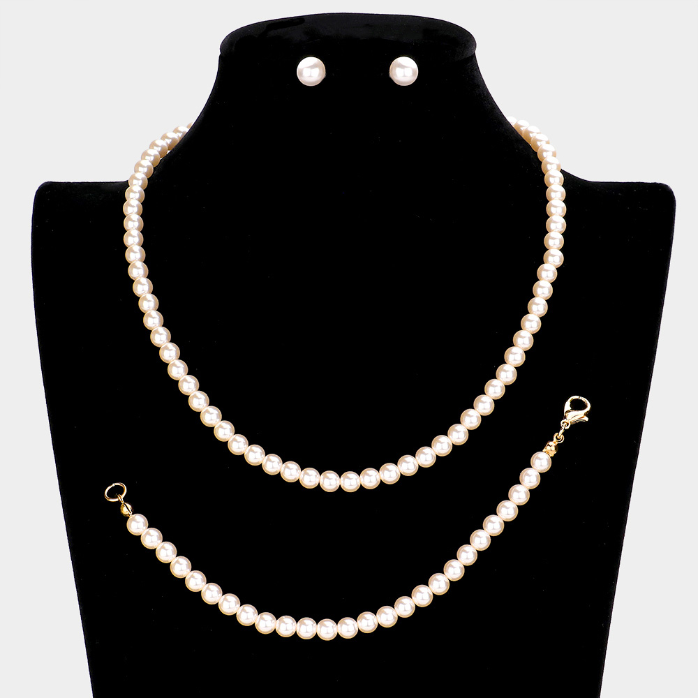 4PCS - Pearl Metal Ball Beaded Stretch Multi Layered Bracelets