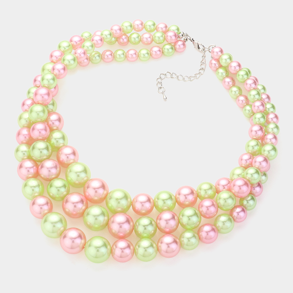 White Gold Dipped Brass Metal 4mm Pearl Necklace