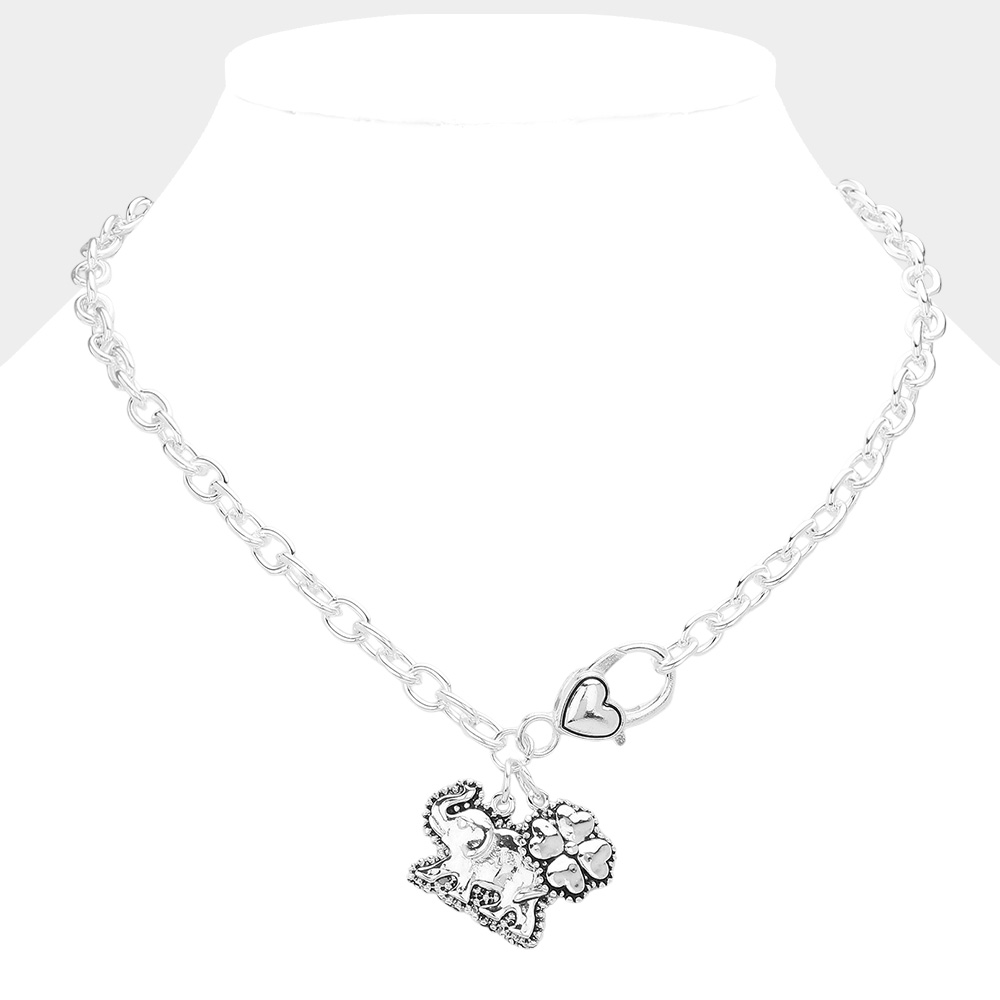 Vintage Stone Accent Cross Heart Charm Station Necklace