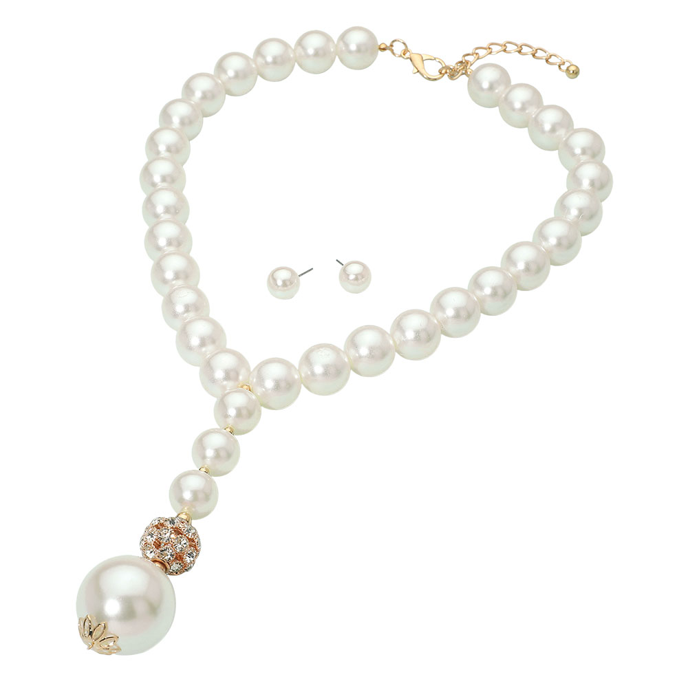 Details • Necklace Size : 20.5" + 3" L • Decor Size : 4.75" L • Earrings Size : 0.5" L • Elegant beaded Y necklace set featuring a statement drop accent and matching stud earrings, perfect for formal events or polished looks. Designed to add sophistication and style, this set enhances any outfit with classic charm and refined detail. • Lead and Nickel Compliant