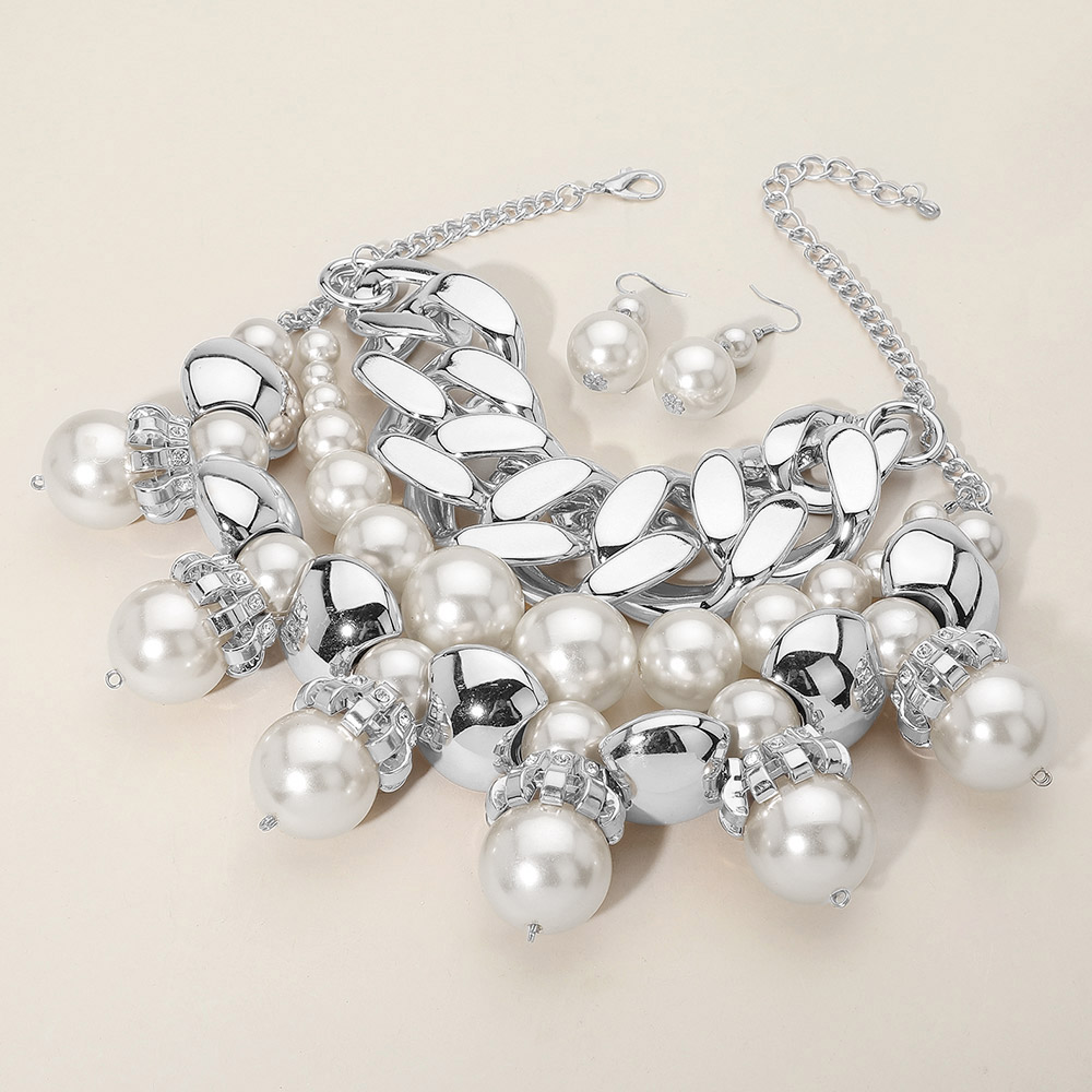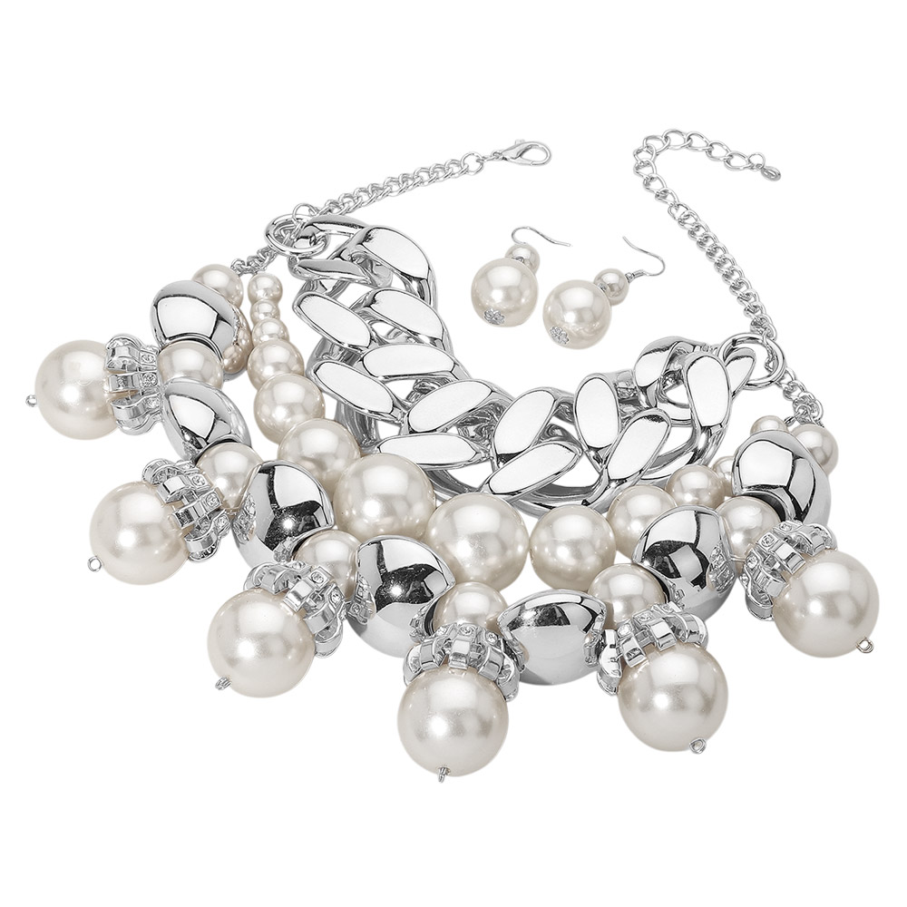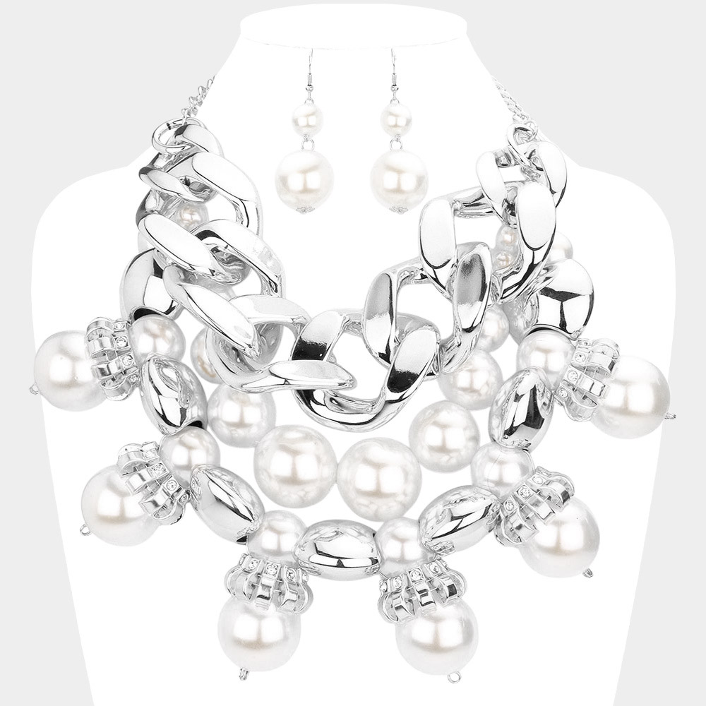 Chunky Chain Pearl Bib Necklace