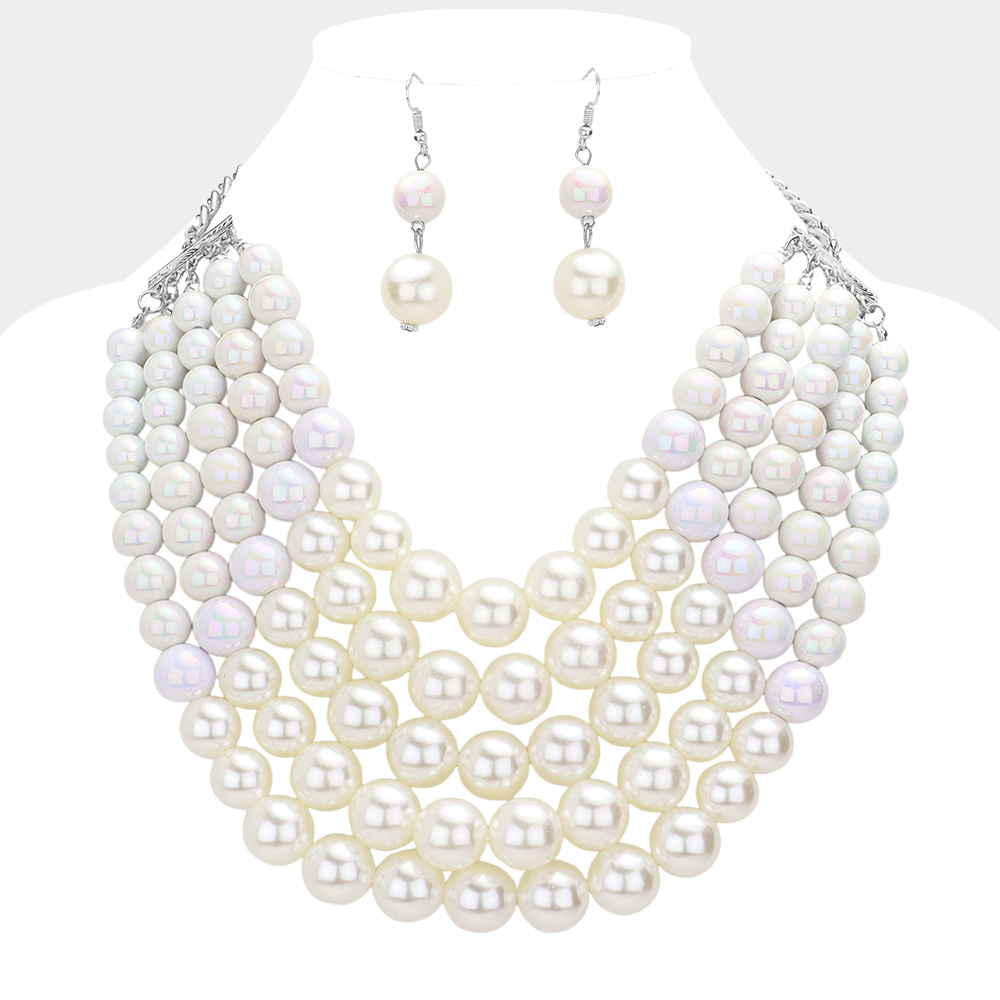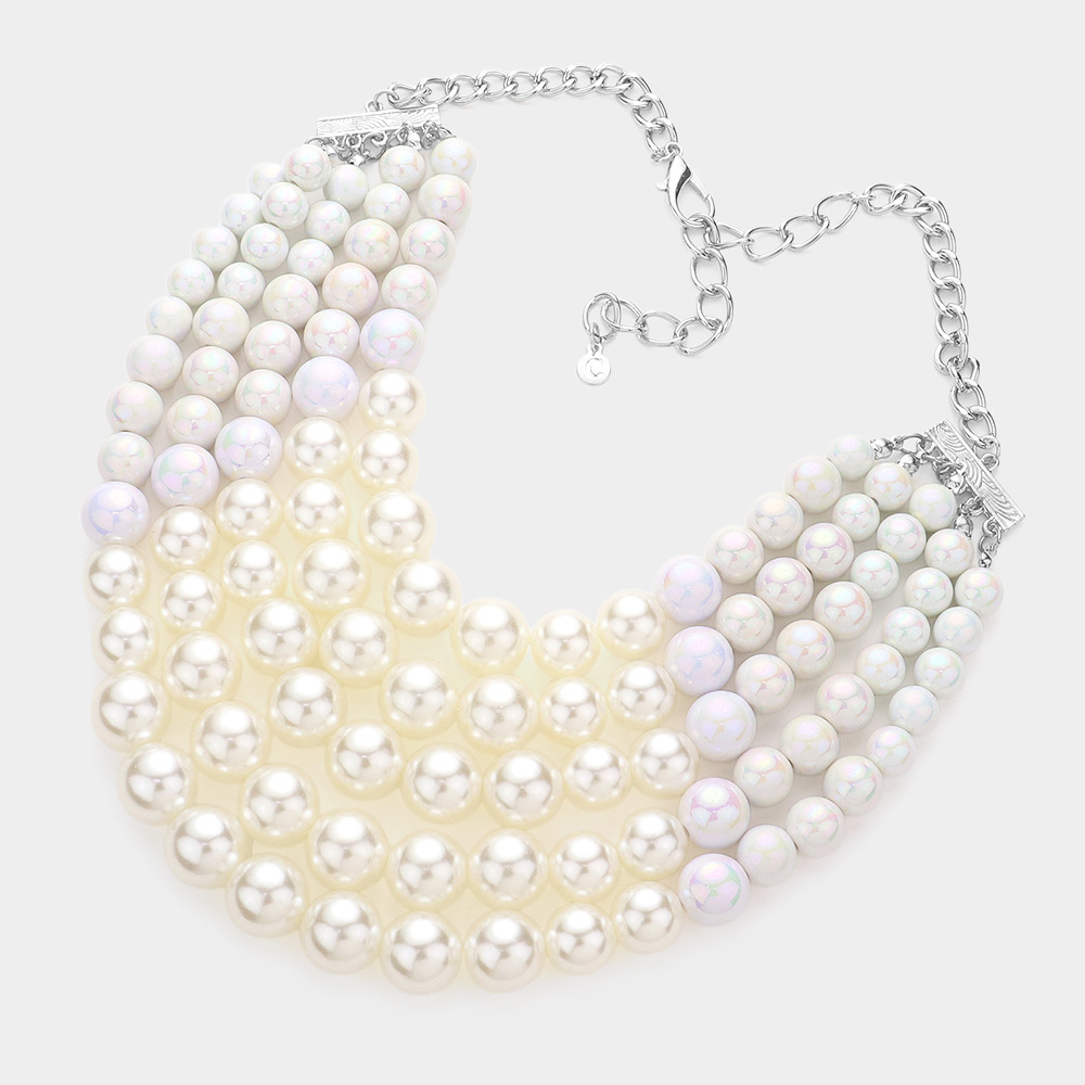 Chunky Multi Strand Pearl Bib Necklace