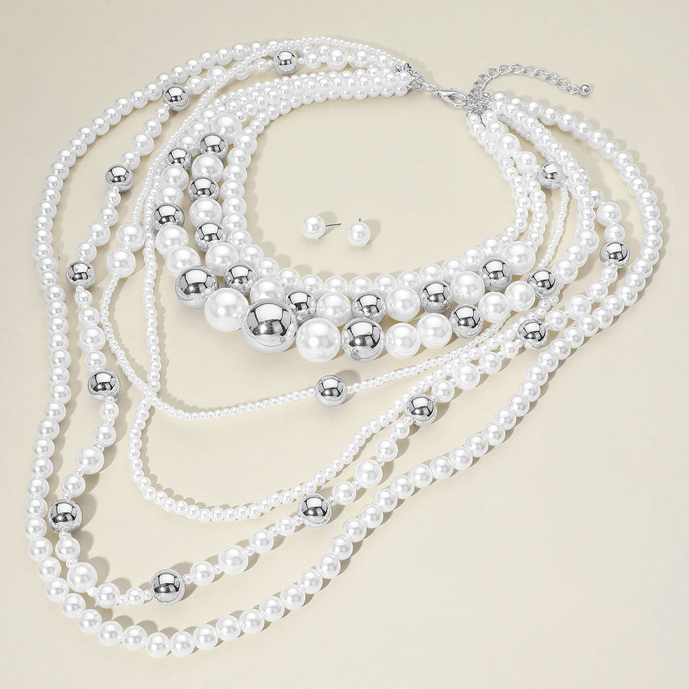 Chunky Pearl Beaded Multi Layered Statement Necklace