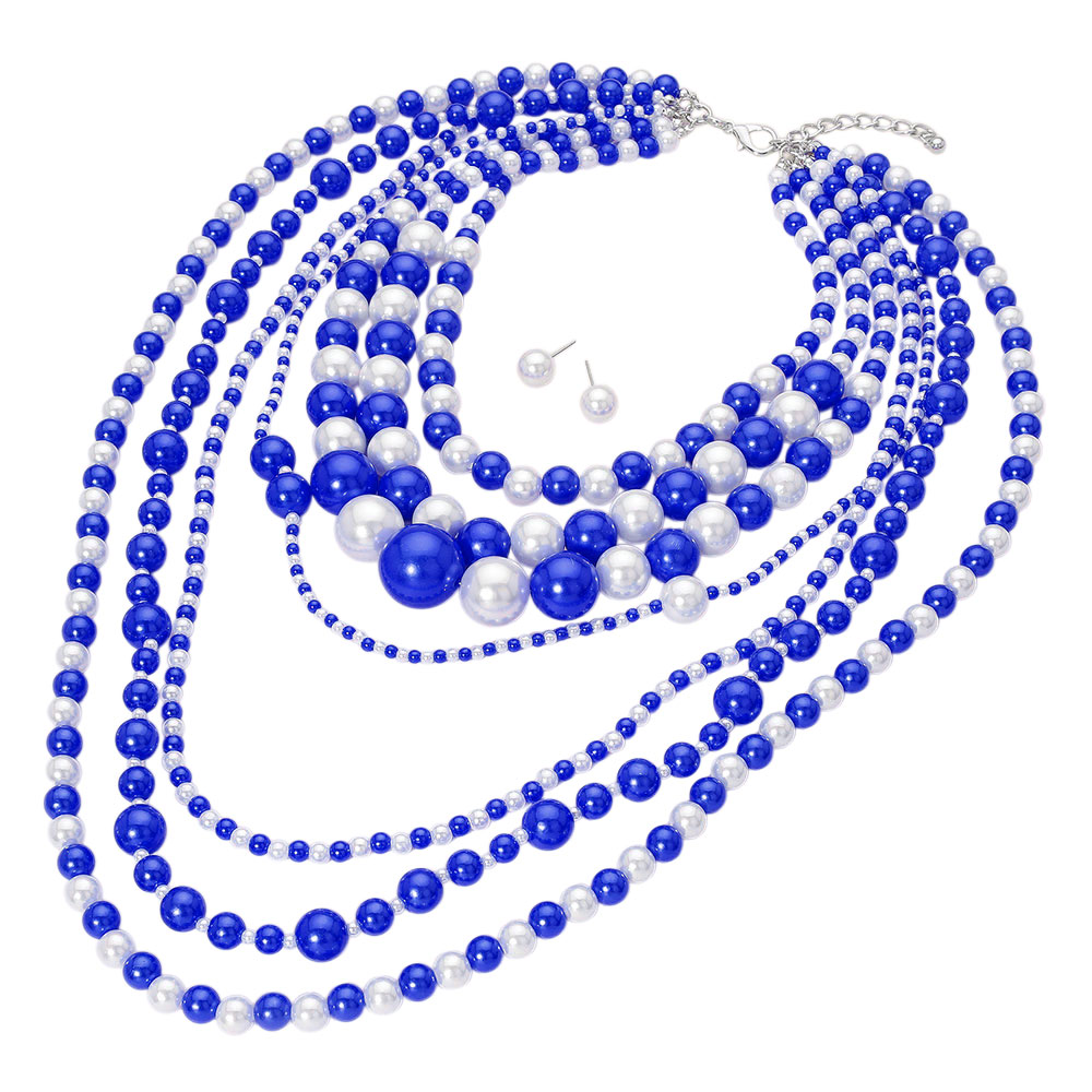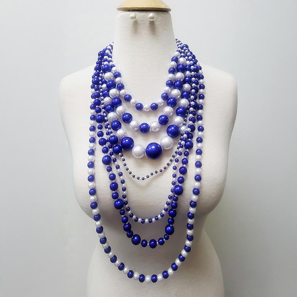Details • Necklace Size : 18" + 3" L • Decor Size : 10" L • Earrings Size : 0.5" L • Make a bold impression with this multi-layer beaded necklace and earring set. Ideal for themed events, costume styling, or standout fashion moments with a fun and glamorous twist. • Lead and Nickel Compliant