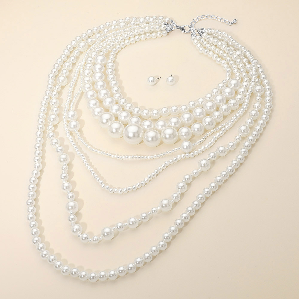 Chunky Pearl Beaded Multi Layered Statement Necklace