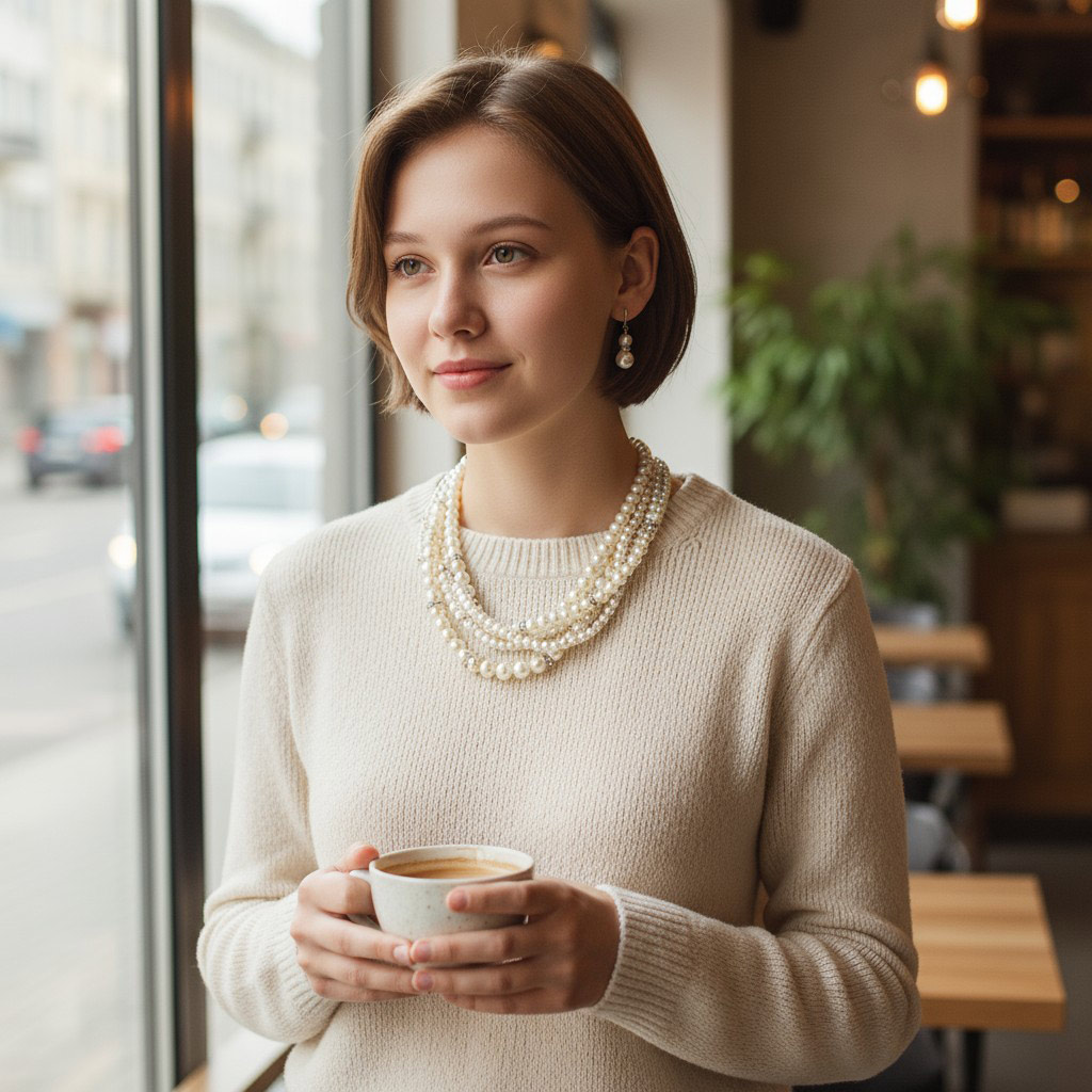 Crystal Accented Multi-Strand Pearl Necklace