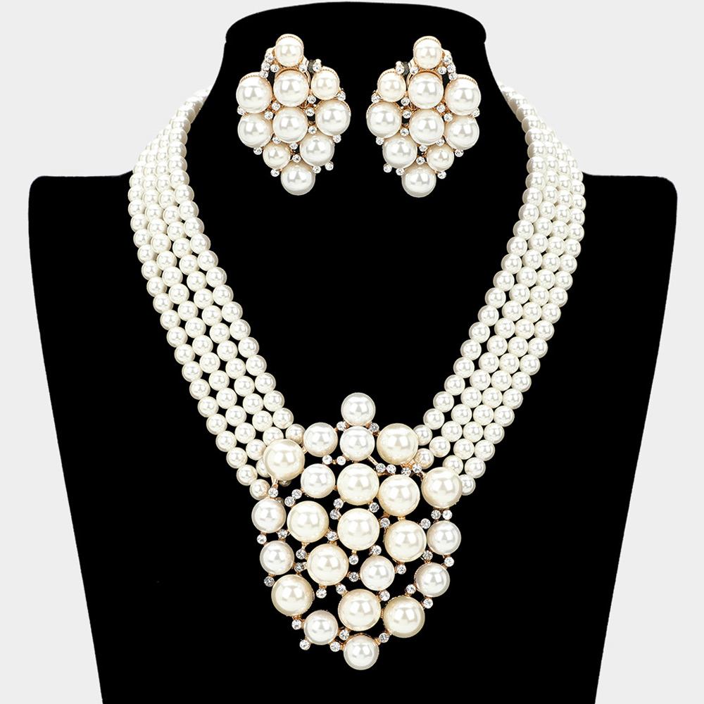 Bold Multi Layered Pearl Beaded Statement Necklace
