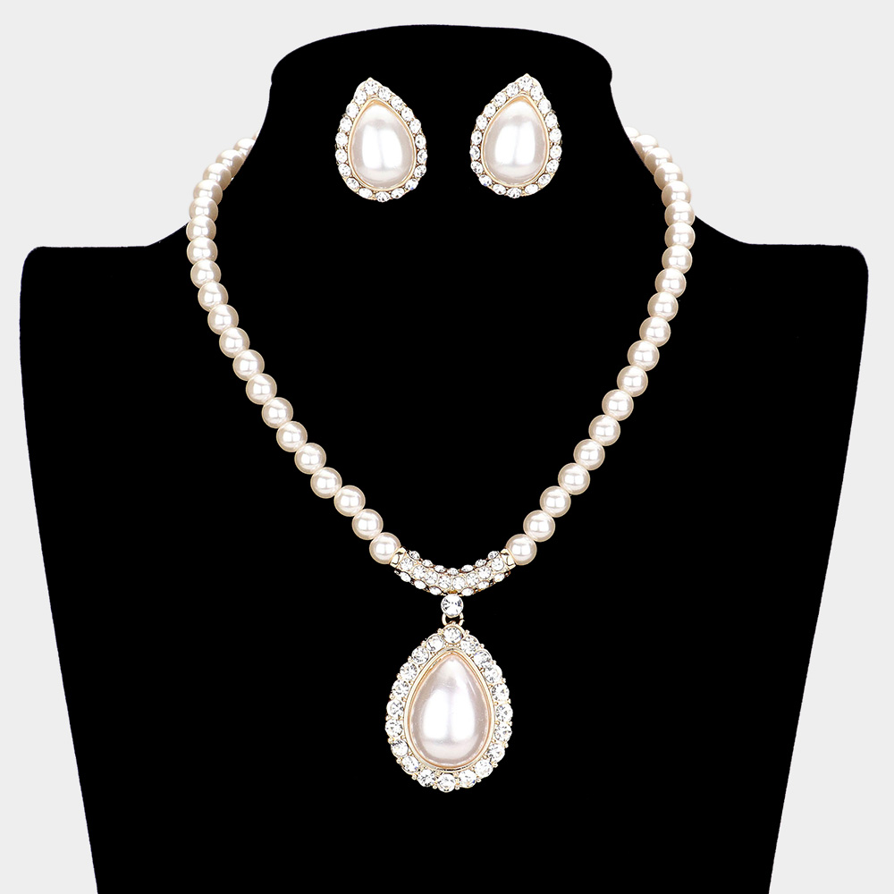 Crystal Trim Pearl Pendant Necklace
