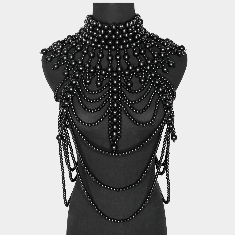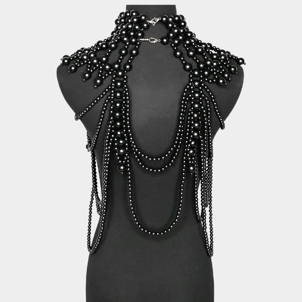 Details • Necklace Size : 18" + 3" L • Decor Size : 23" L • Turn heads with this extravagant beaded choker necklace, designed with cascading layered drapes for a dramatic, high-fashion effect. Perfect for special occasions, parties, or runway-inspired styling, it adds instant glamour and sophistication to any outfit.