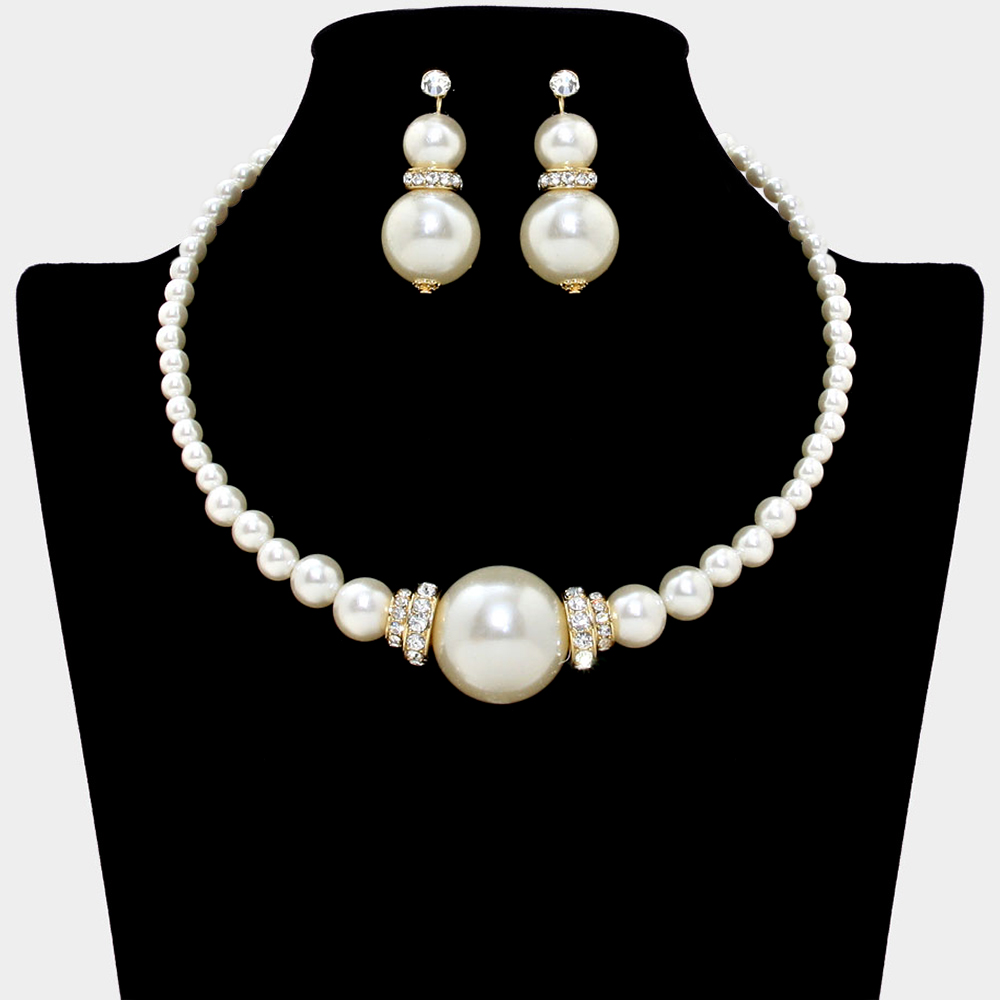 Elegant Rhinestone Accents Faux Pearl Necklace