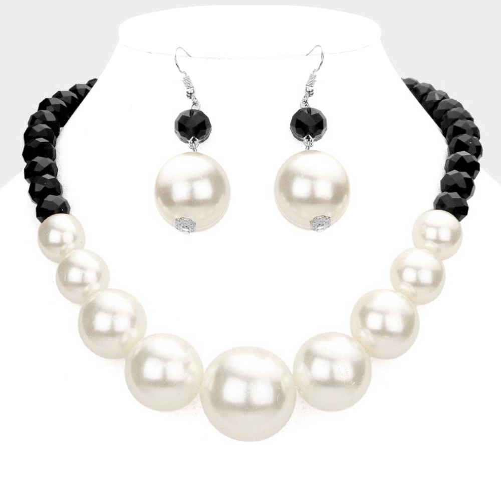 3PCS - Pearl Heart Pendant 3-Row Choker Necklace Jewelry Set