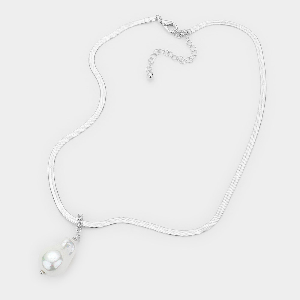 Pearl Pointed Textured Metal Shell Dangle Earrings