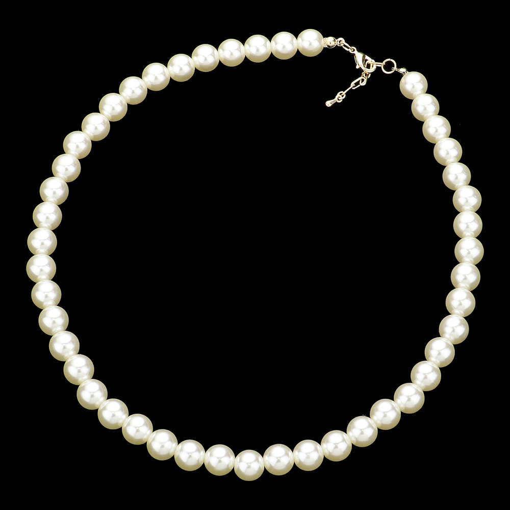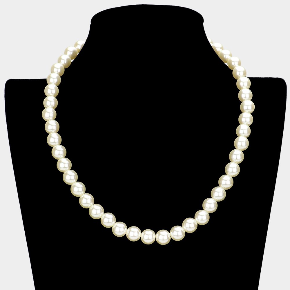 White Gold Dipped Brass Metal 10mm Pearl Necklace
