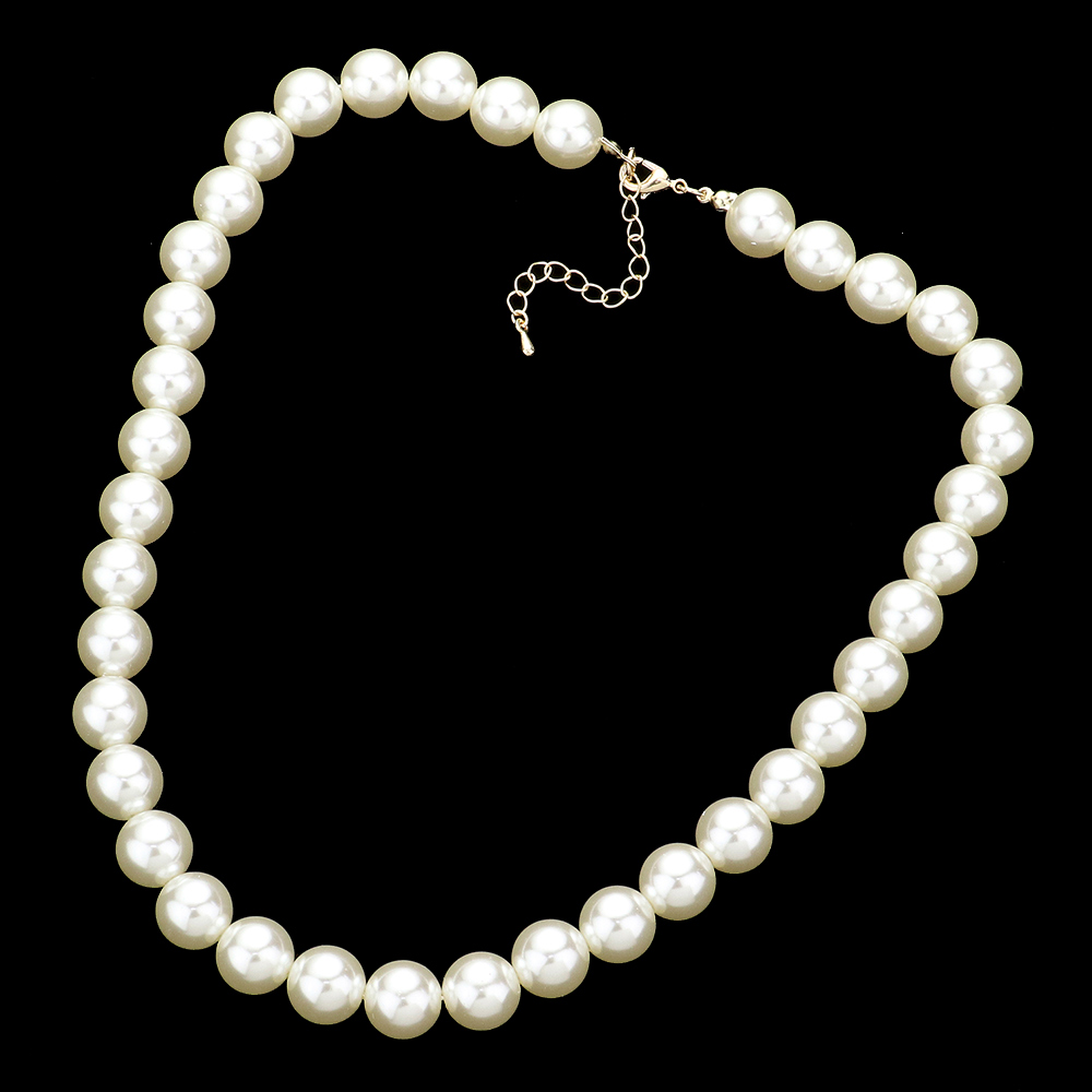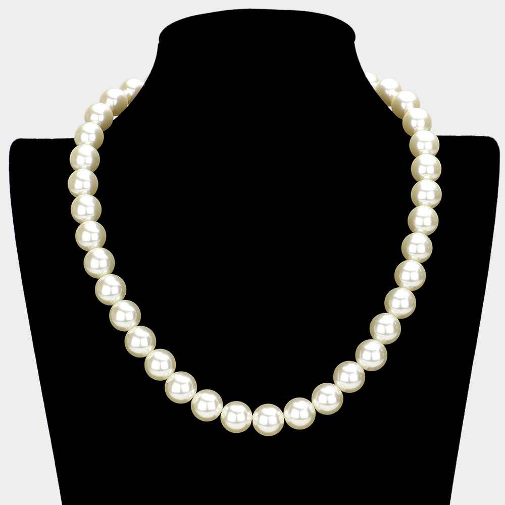 White Gold Dipped Brass Metal 12mm Pearl Necklace