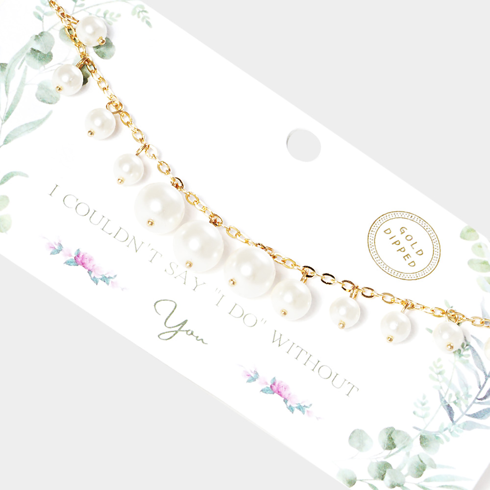Vintage Inspired Antique Metal Flower Bow Charm Pearl Chain Accent Safety Pin Brooch